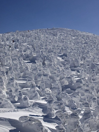 «Снежные монстры» (по-японски дзюхе, juhyo) — это уникальное природное явление, которое можно наблюдать на горе Дзао в Японии каждую зиму.