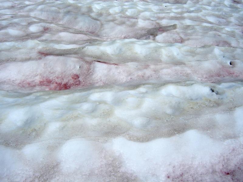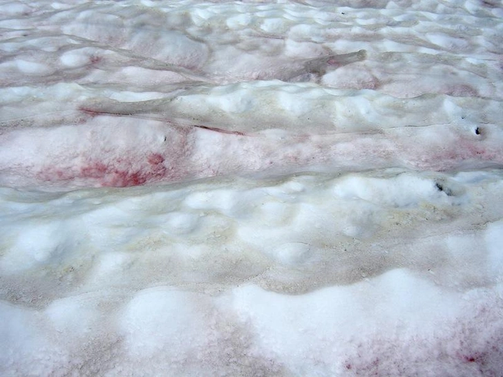 Розовый, красный или так называемый «арбузный» снег — это природное явление, вызванное массовым размножением микроскопических водорослей. Явление наблюдается в полярных регионах и высокогорьях по всему миру, включая Альпы, Камчатку, Алтай и Антарктиду.