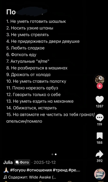 Привередливость в еде — еще один «красный флажок», по мнению девушек. «Спрашиваешь у него, какую еду он не ест, а он выкатывает целый список блюд и продуктов, вызывающих у него отвращение», — с недовольством делятся пользовательницы в своих роликах.