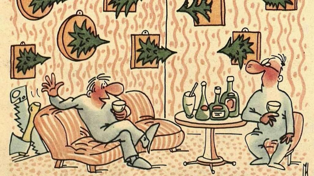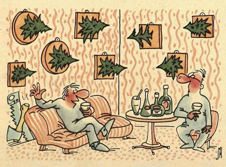 В Новый год в СССР все отдыхали и веселились, причем используя каждый миг: выходной-то был всего один, 1 января! Не отдыхали и не веселились лишь дедушка Брежнев Мороз, Снегурочка и советские карикатуристы. Они веселили.