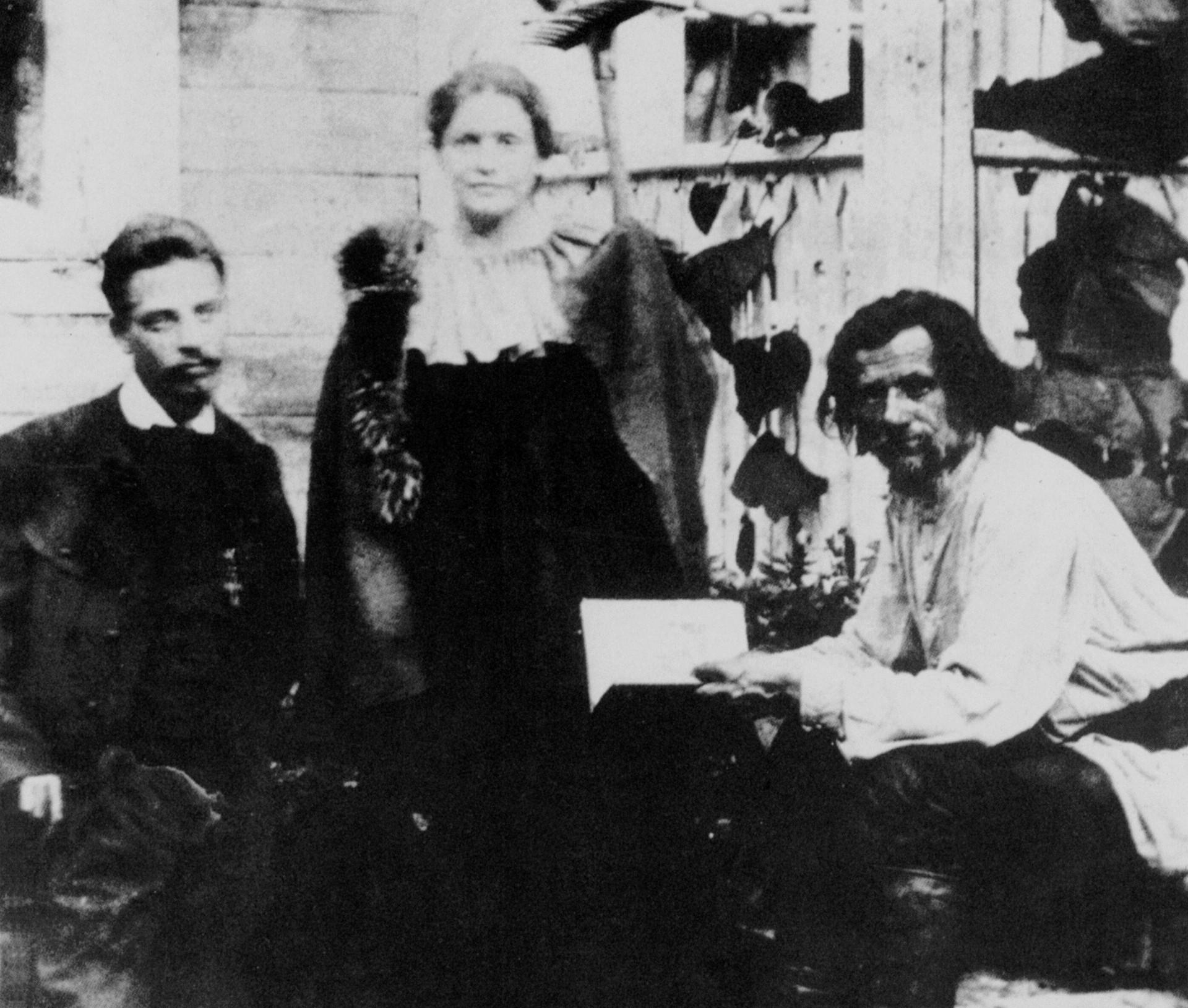 Лу Андреас-Саломе и поэт Райнер Мария Рильке (слева) в гостях в России у поэта Спиридона Дрожжина, 1899 г.