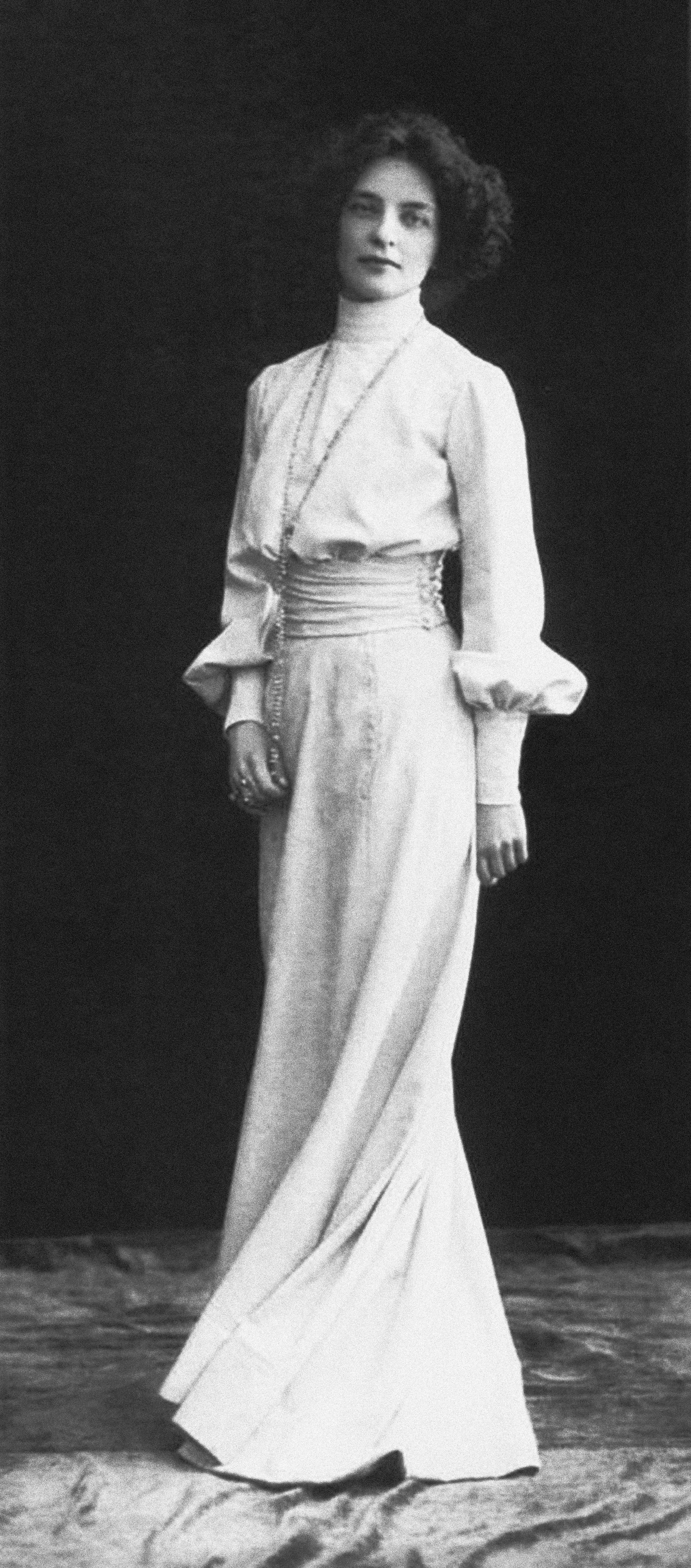 Стиль Гиппиус — длинные облегающие платья с крылышками, томная бледность, рыжие волосы — сделал ее иконой декаданса. Она любила наряжаться в мужские костюмы, носила монокль, имела десяток мужских псевдонимов и собирала кольца, подаренные ей влюбленными мужчинами, в ожерелье.