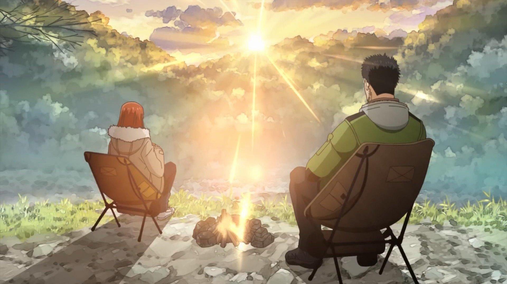 Спокойное и атмосферное аниме о мужчине и женщине, которые случайно знакомятся во время одиночных походов и постепенно находят общий язык через любовь к природе и тишине. Вместо экшена здесь костер, палатка и долгие разговоры под звездами.