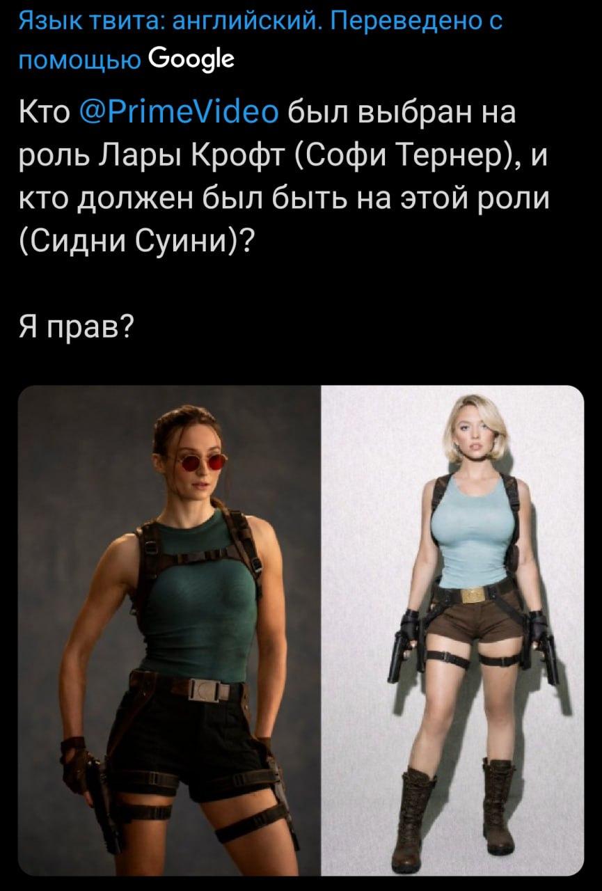 Пока что ни Софи, ни Суини не ответили на предложения фанатов. Вряд ли случится такая история, что на старте проекта актрису все-таки заменят, да и, положа руку на сердце, Сидни не очень вяжется с образом расхитительницы гробниц. Но все бывает! Следим за развитием событий и надеемся, что будущий фильм получится не хуже, чем с Анджелиной Джоли.