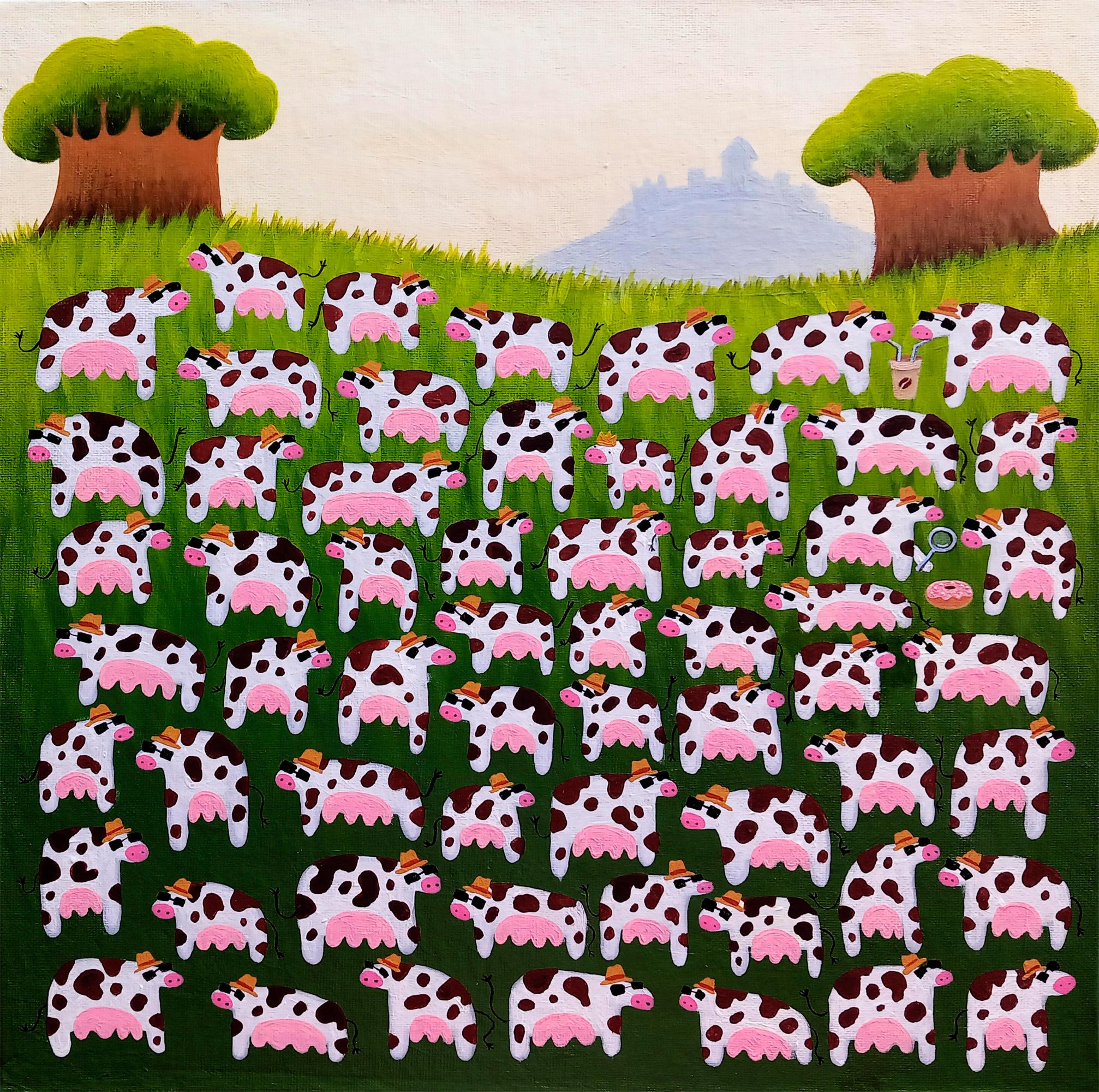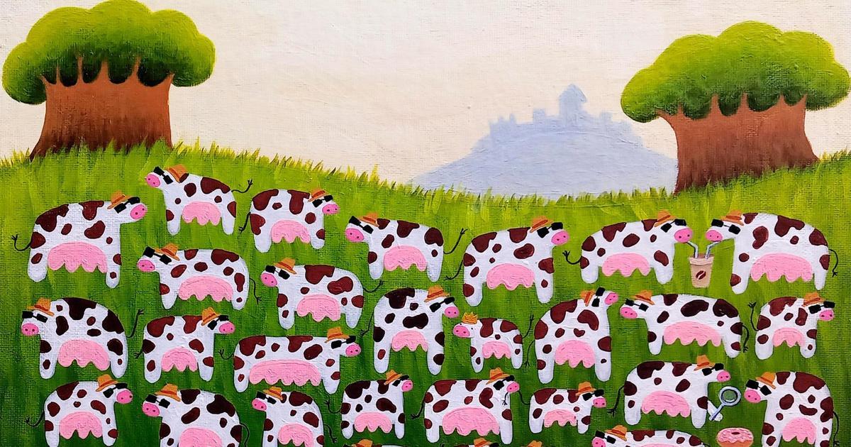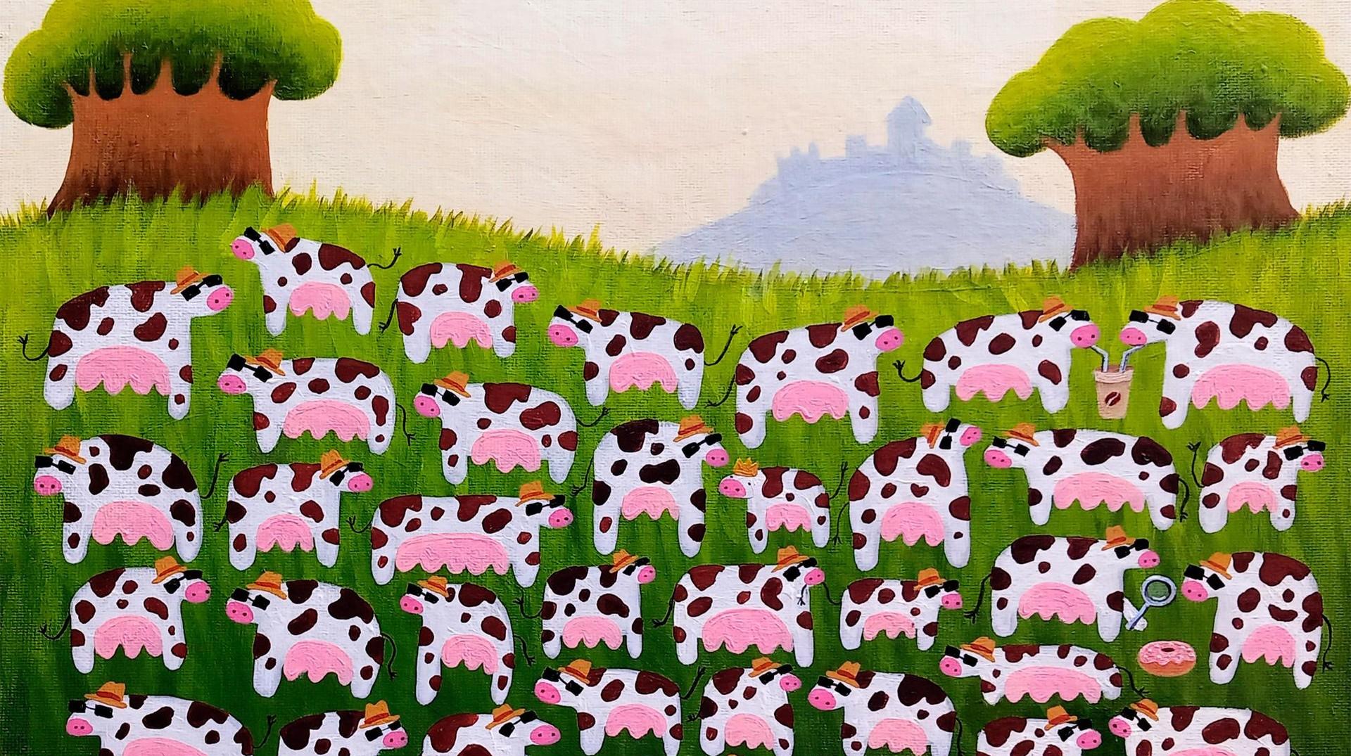 Перед вами не самая сложная, хотя позитивная и милейшая картинка-головоломка. Как пелось в одной старой песне: «Далеко, далеко на лугу пасутся ко…» Верно, коровы! Однако одна из них не простая, носит большой монархический знак отличия, она — королева коров. Сколько у вас уйдет времени, чтобы ее вычислить в стаде?
