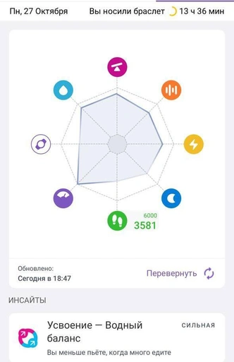 Также производитель обещал, что гаджет сделает выводы из нашего потребления пищи и жидкости. Но за неделю использования удалось добиться только вывода, что когда мы больше потребляем пищи, то пьем меньше жидкости.