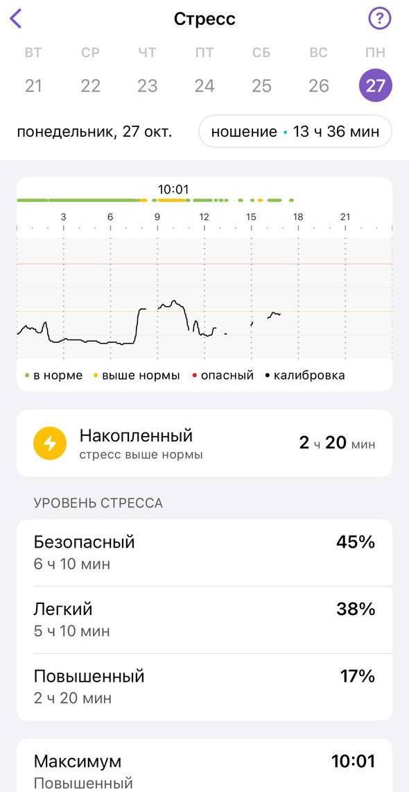 Но чем дольше носить браслет, тем больше он «привыкает» и уже не тревожит пушами «У вас опасный уровень стресса» по пустякам вроде рабочих созвонов.
