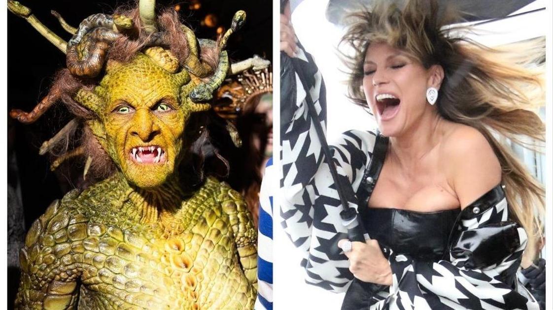В этот раз топ-модель стала Горгоной Медузой — это героиня греческой мифологии, которую богиня Афина превратила в чудовище со змеями вместо волос. Существует легенда, что тот, на кого посмотрит Медуза, превратится в камень. На вечеринке в эту роль идеально вписался 36-летний муж Клум Том Каулитц из группы Tokio Hotel: ему сделали наряд окаменевшего рыцаря.