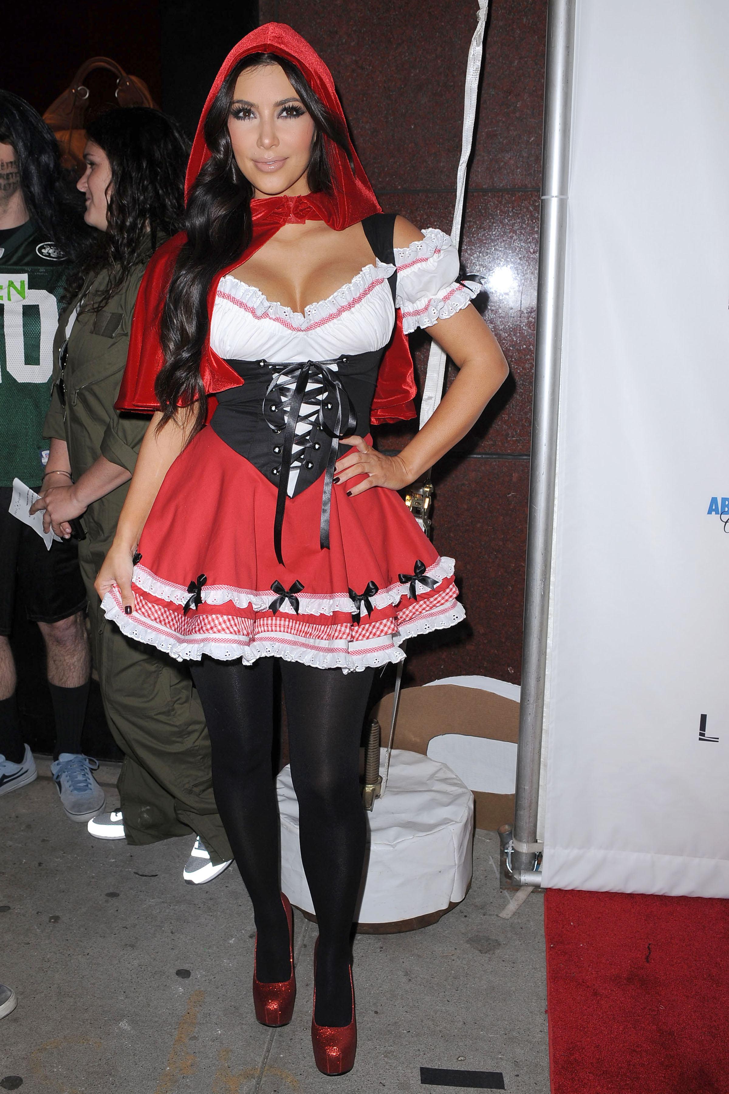 Хеллоуин — кажется, один из любимых праздников Ким Кардашьян, потому что каждый год во время праздника звезда придумывает эпатажные и запоминающиеся костюмы. В далеком 2010-м Ким предстала в наряде, который мы бы назвали «Красная Шапочка не для всех». Образ состоял из мини-платья с корсетом и глубоким декольте.