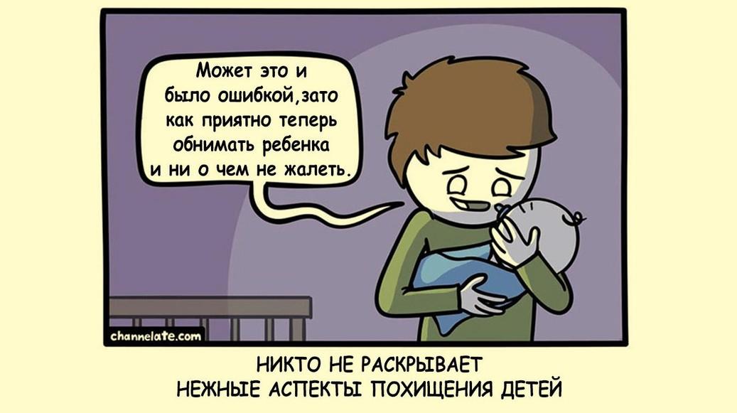 Райан Хадсон уже два десятка лет мучит своих читателей черным и непредсказуемым юмором. Канал автора называется Channelate, а сам художник отнюдь не скрывает свои источники для вдохновения — комиксы Cyanide and Happiness, мультфильмы «Южный Парк» и «Рик и Морти». Вряд ли вы удивитесь, узнав это. А особенно после того, как оцените произведения Райана, которые мы перевели на русский и затолкали в одну галерею. А что не влезало — тому отрубили руки и ноги, после чего влезло.