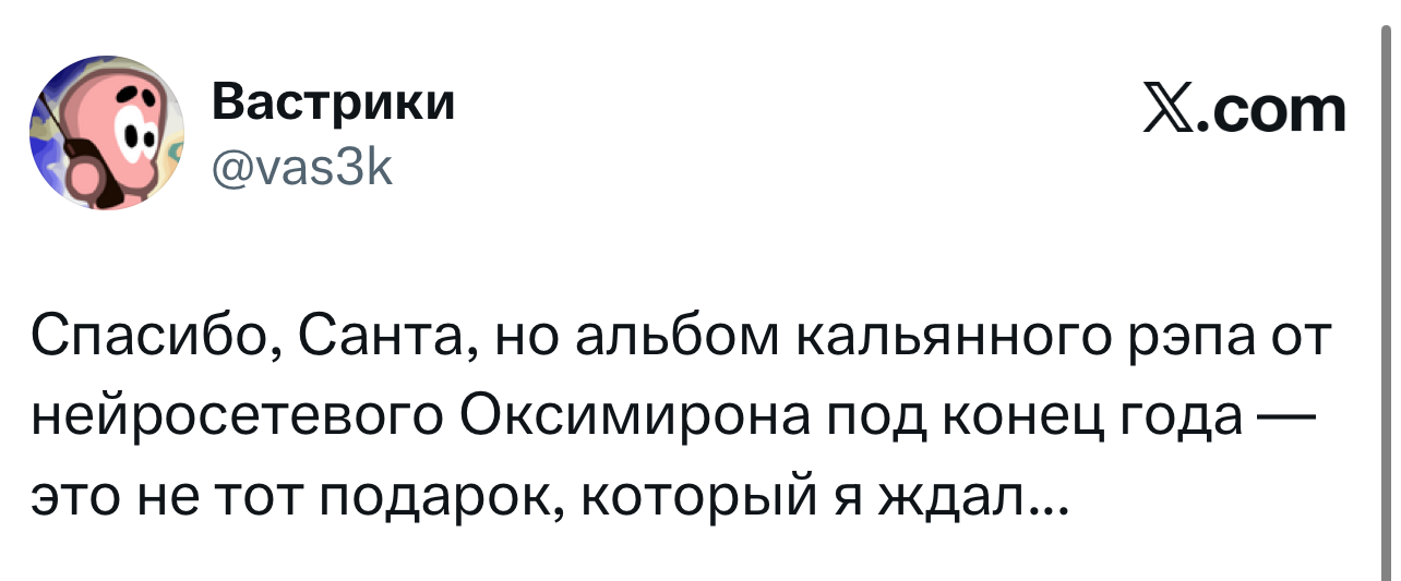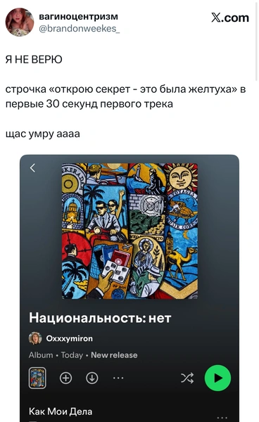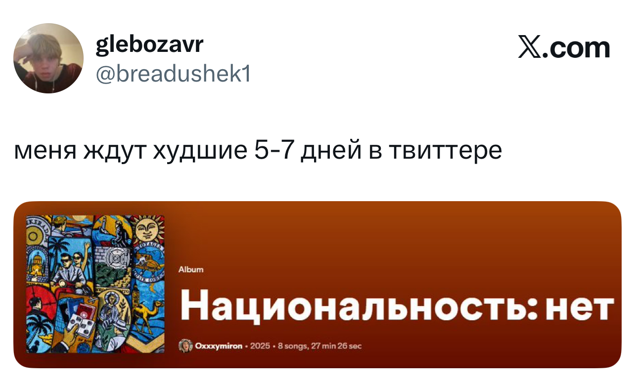 Но внезапно под конец 2025 года Оксимирон подал голос. Да еще как! Утром 17 декабря появились новости, что он опубликовал новый альбом «Национальность: нет». Все тут же принялись его слушать и искать ответы. Но… их ждало разочарование.