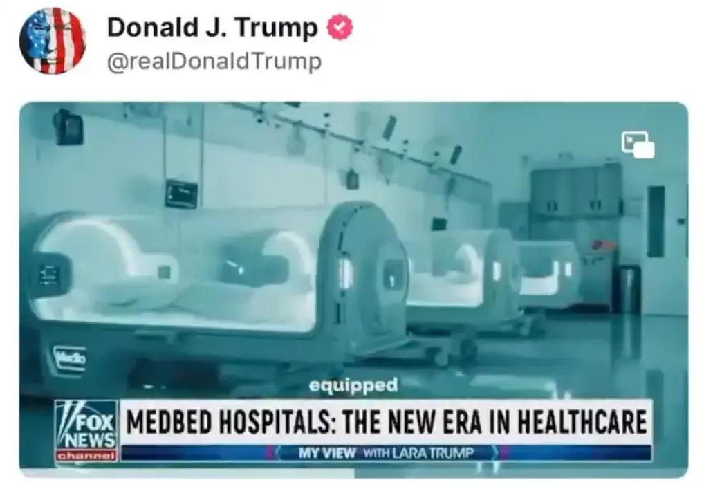 Последние несколько лет конспирологическое движение QAnon продвигает идею о том, что существуют «медбеды» (medbed) — чудо-кровати, которые могут за 15 минут вылечивать рак, омолаживать организм и даже отращивать потерянные конечности. В 2025 году теория получила новый виток, когда президент опубликовал и затем удалил фейковый ролик, в котором рассказывается, что такая фантастическая система лечения запускается в Белом доме.