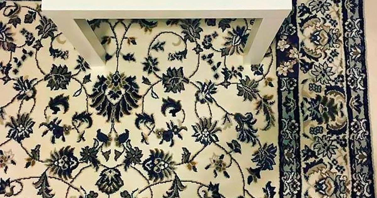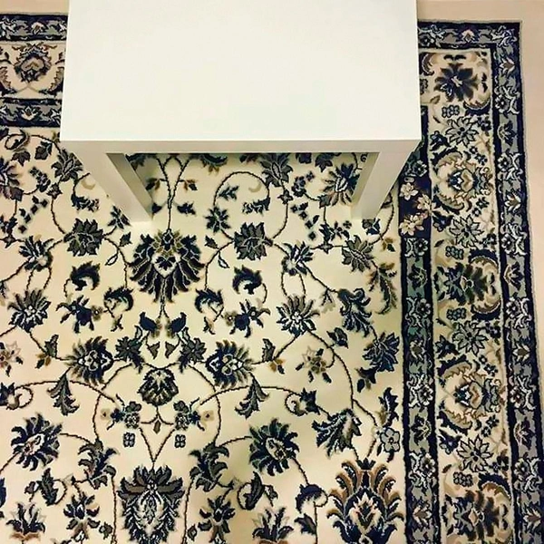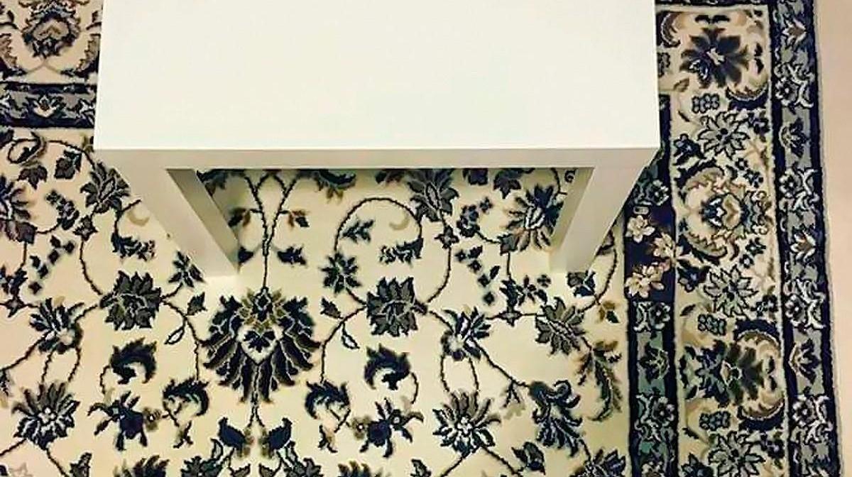 Подсказка. Искать следует в правой верхней части изображения. Телефон в чехле лежит прямо возле правой ножки столика, на темной полосе ковра.