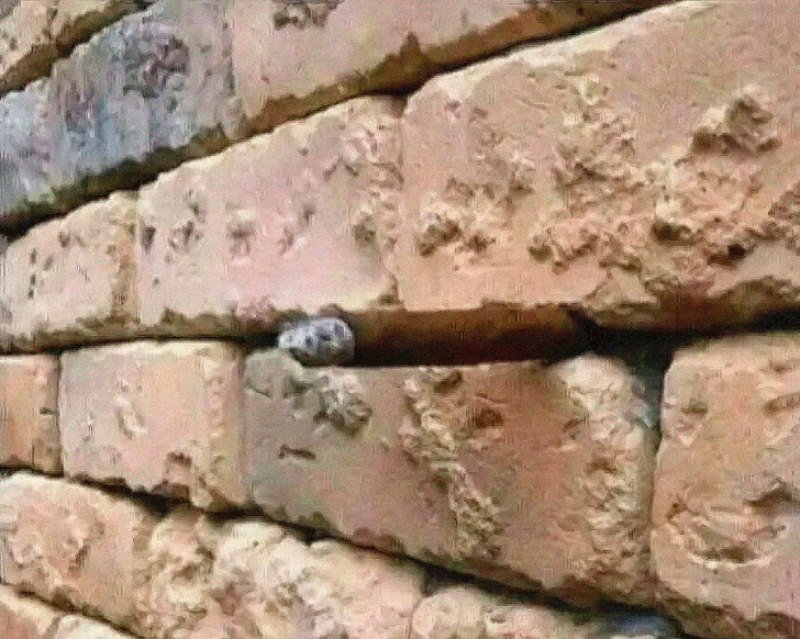 Отгадка. Камешек в центре — не камешек, а кончик большой сигары, которую воткнули в кладку, видимо не найдя пепельницы.