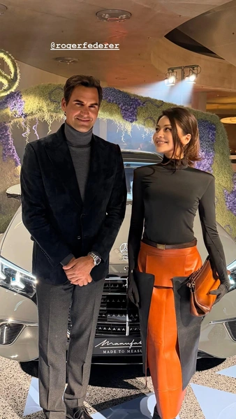 Недавно красавица сообщила, что теперь сотрудничает с Mercedes-Benz и опубликовала видео с премьерного показа нового автомобиля. На мероприятии она сидела в первом рядом с великим теннисистом Роджерем Федерером, а на сцене в этот момент выступал Сэм Смит.