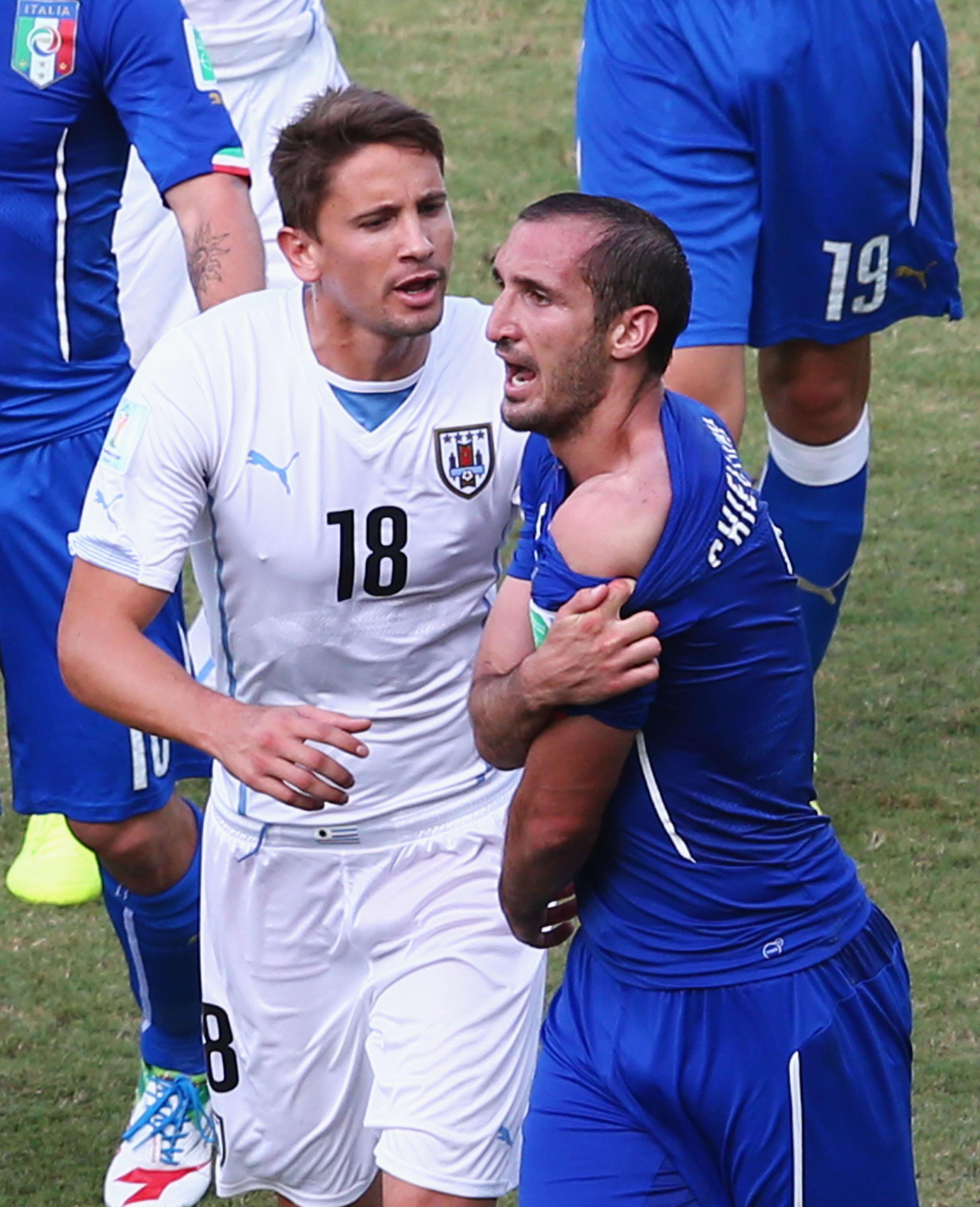 Но есть моменты, которые выбиваются за рамки симуляций и переходят в откровенную грязь. Они касаются представителей разных поколений. Например, перенесемся в 2014-й, на ЧМ в Бразилию. Матч Италии и Уругвая запомнился скандалом: Луис Суарес укусил защитника Джорджо Кьеллини в борьбе.