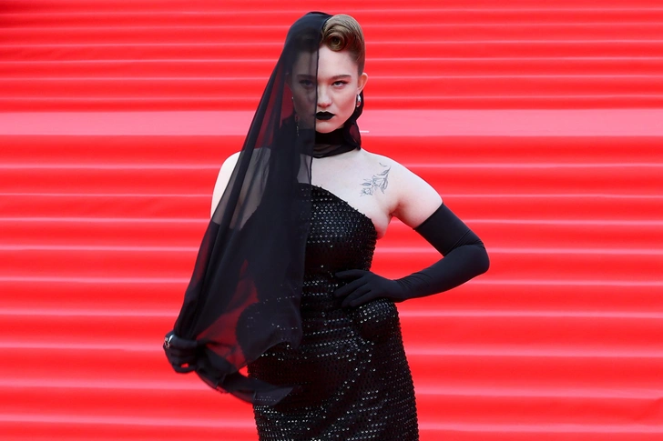 Аврора Киба, для которой этот выход стал первым, выбрала платье с холодным металлическим эффектом и открытой спиной. Образ выглядел собранно и чуть отстранённо, как будто заранее был рассчитан на внимание камер.
