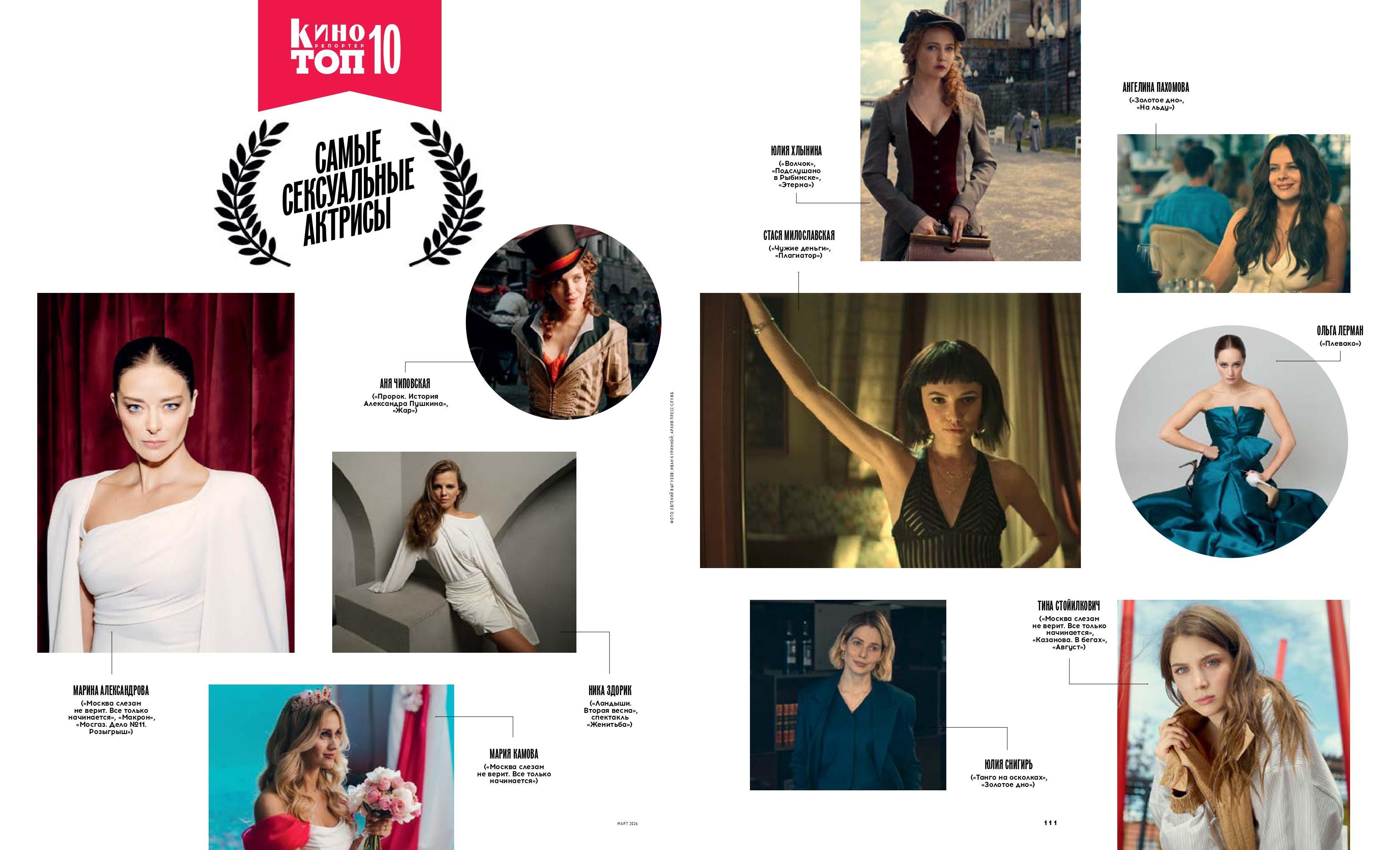Международный акцент рейтингу придает сербская актриса Тина Стойилкович. В фильме «Август» и сериалах «Москва слезам не верит. Все только начинается» и «Казанова. В бегах» ее экранный темперамент и эмоциональная свобода создают ощущение подлинной страсти.