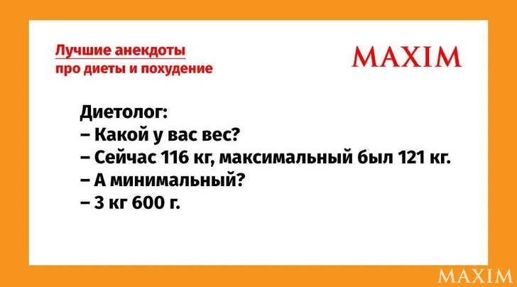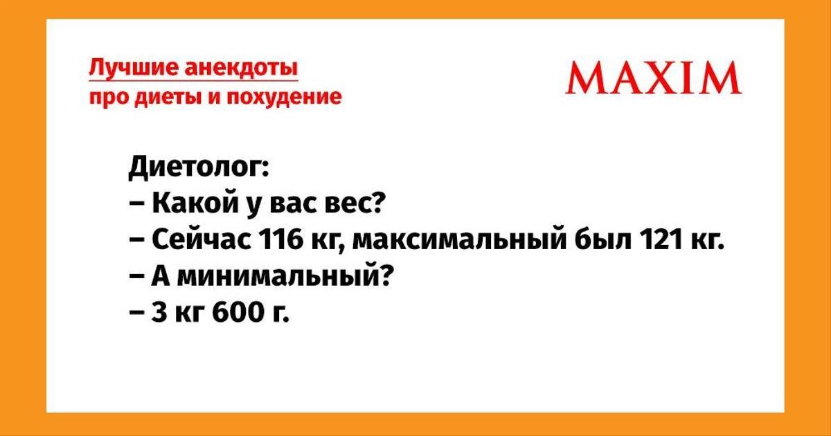 — Я тут решил похудеть. Сходил к диетологу, пропил курс похудательных таблеток, прошел курс строжайшей диеты…