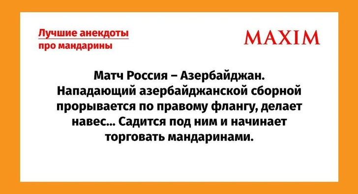 Нападающий азербайджанской сборной прорывается по правому флангу, делает навес… Садится под ним и начинает торговать мандаринами.
