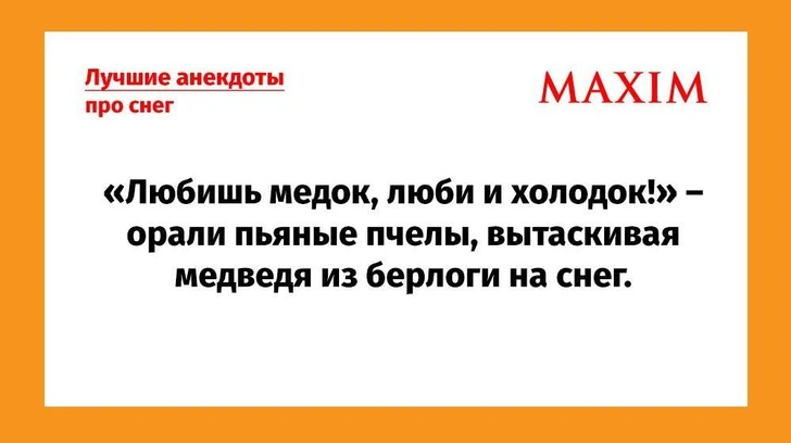 «Любишь медок, люби и холодок!» — орали пьяные пчелы, вытаскивая из берлоги медведя на снег.