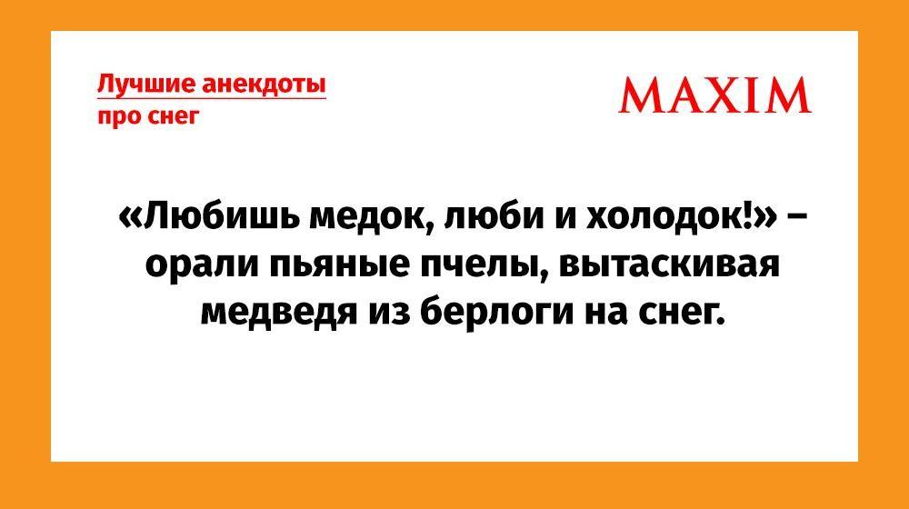 — А знакомство с тобой подарило мне твердое убеждение: мужики как первый снег: никогда не знаешь, когда придет, сколько сантиметров будет и как долго продержится!