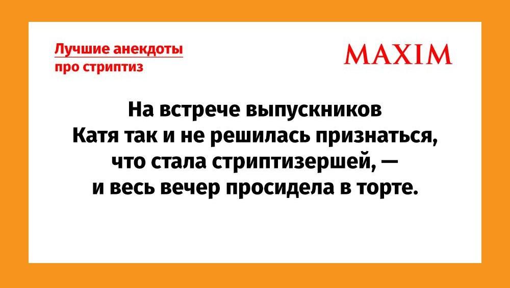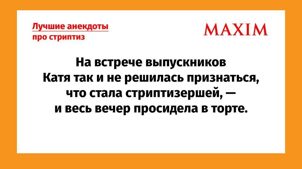 Наградой ей был арест за непристойное поведение, штраф в 100 франков — и вечная всемирная слава. А также анекдоты, в которых народ выражает все свои чувства к этому явлению, его адепткам и адептам. MAXIM собрал лучшие и самые смешные анекдоты про стриптиз (и стриптизерш!)!