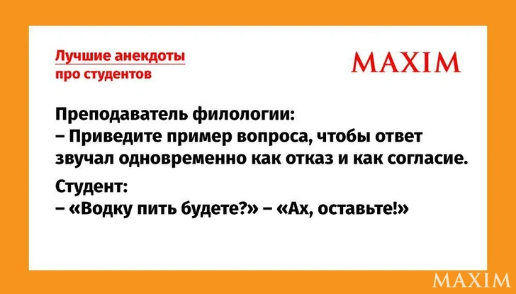 — Приведите пример вопроса, чтобы ответ звучал одновременно как отказ и как согласие. Студент: