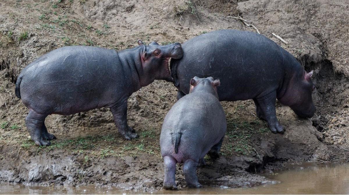 Размножаются бегемоты как люди, в смысле — круглый год. Но есть у них продиктованный природой массовый гон с июня по сентябрь. Самцы бьются за самок, причем весьма сурово, вплоть до летального исхода.