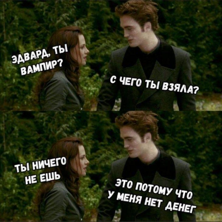 Когда-то сага «Сумерки» был главным романтическим хитом для подростков, а теперь стала неиссякаемым источником мемов. Интернет превратил драматичные сцены, пафосные цитаты и страдальческие взгляды главных героев в комедийное золото. Мы собрали самые смешные шутки и мемы, доказывающие, что даже через 15 лет сага живет! Правда, уже в виде юморесок.