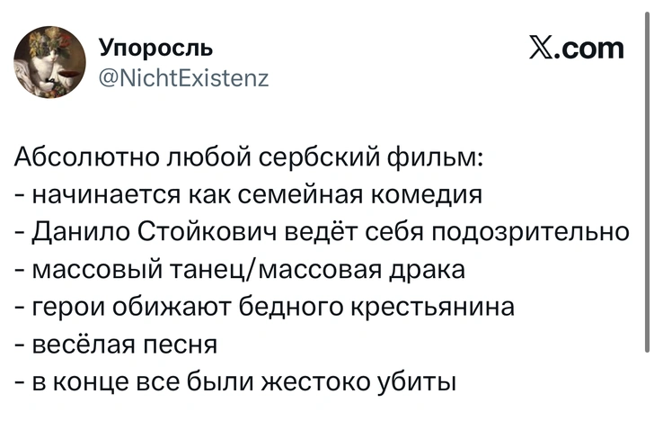 Вот уже несколько лет все мы живем в «исторические времена». Единственное, что нас отвлекает, — это юмор, в том числе шутки из «Твиттера» (X). Русскоязычные пользователи каждый день выходят в эту лаконичную соцсеть, преодолевая запреты и блокировки, чтобы потешить самих себя и друг друга. А мы в MAXIM каждый будний день неустанно несем вахту, собирая их лучшие текстово-визуальные юморески.