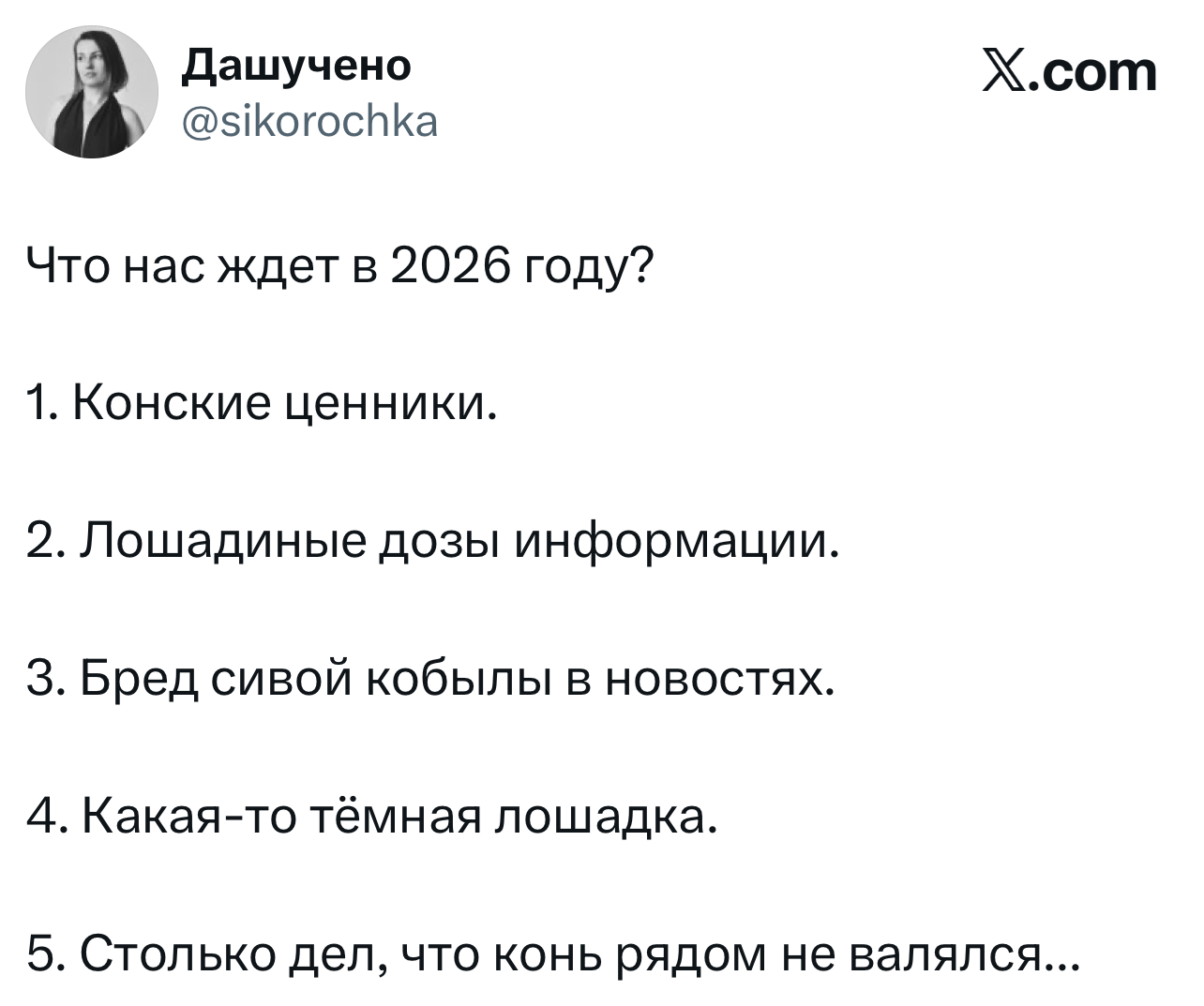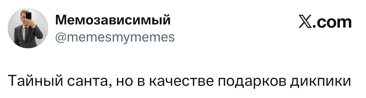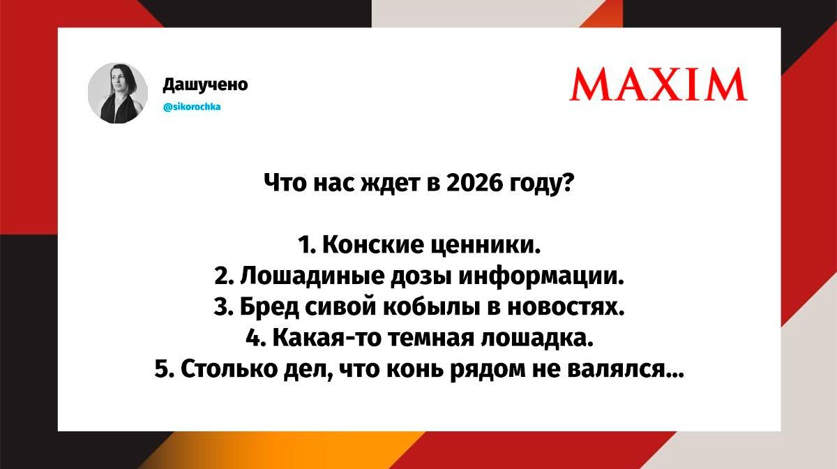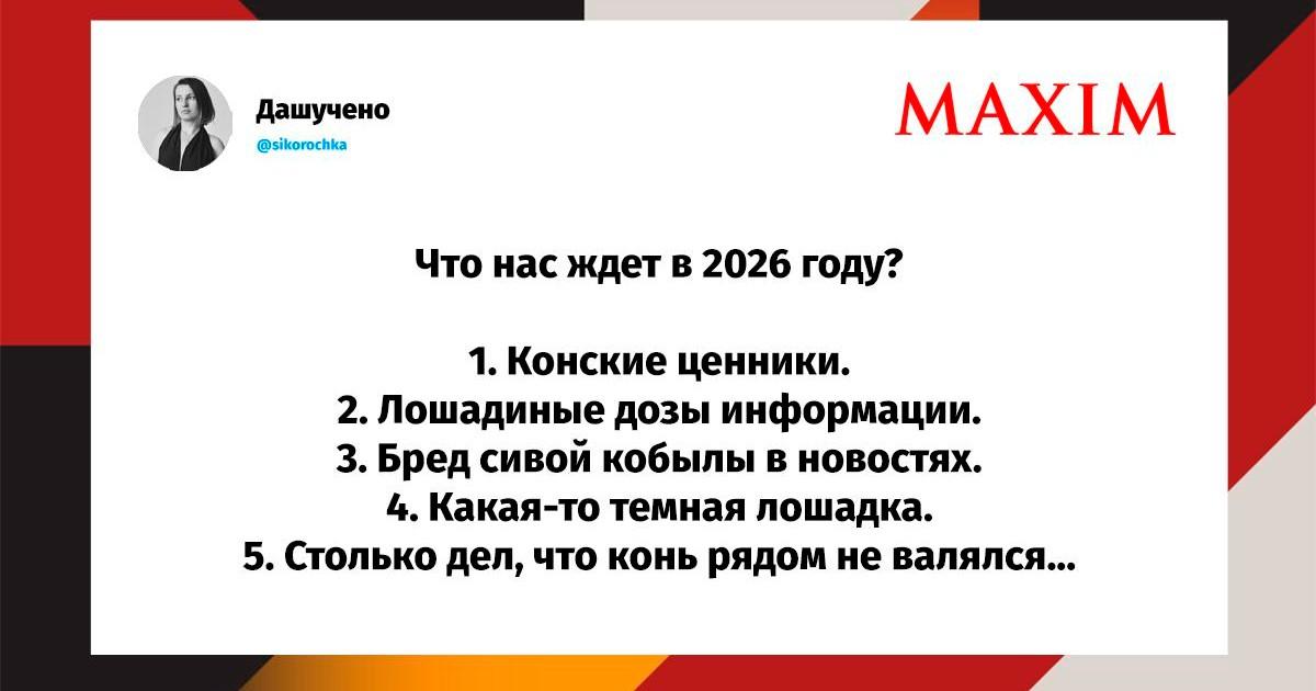 Вот уже несколько лет все мы живем в «исторические времена». Единственное, что нас отвлекает, — это юмор, в том числе шутки из «Твиттера» (X). Русскоязычные пользователи каждый день выходят в эту лаконичную соцсеть, преодолевая запреты и блокировки, чтобы потешить самих себя и друг друга. А мы в MAXIM каждый будний день неустанно несем вахту, собирая их лучшие текстово-визуальные юморески.