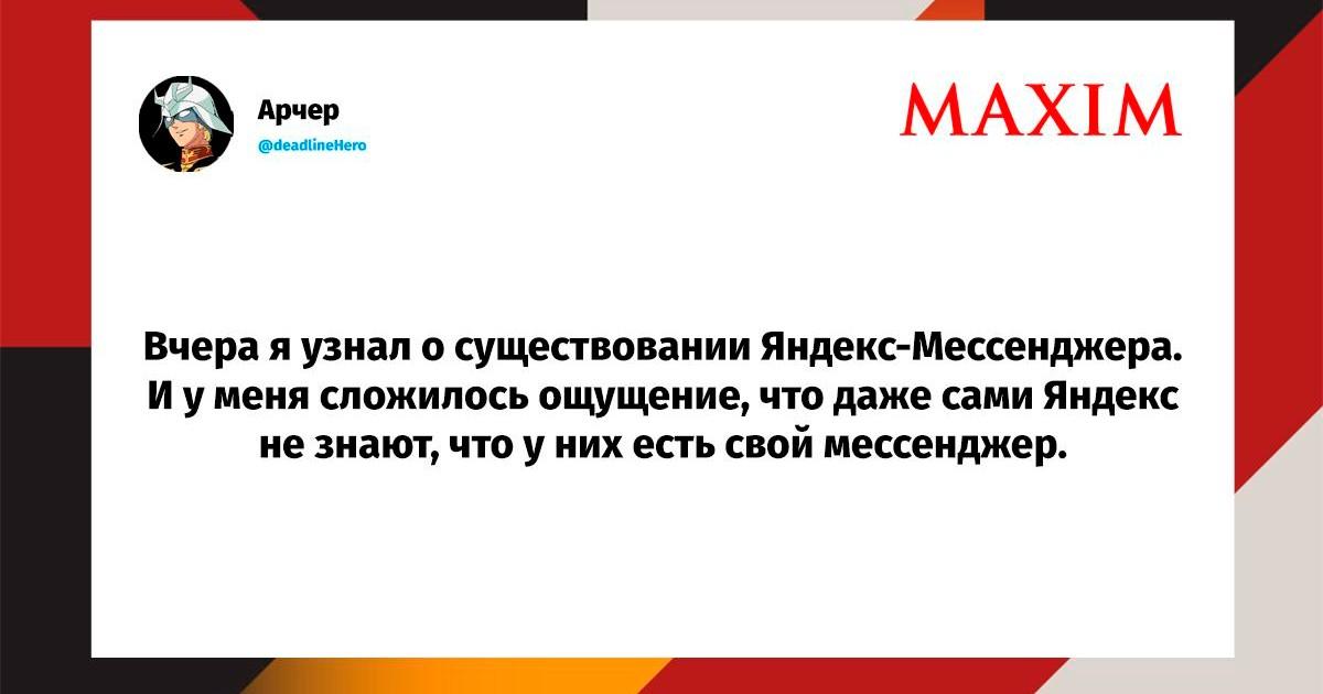 Вот уже несколько лет все мы живем в «исторические времена». Единственное, что нас отвлекает, — это юмор, в том числе шутки из «Твиттера» (X). Русскоязычные пользователи каждый день выходят в эту лаконичную соцсеть, преодолевая запреты и блокировки, чтобы потешить самих себя и друг друга. А мы в MAXIM каждый будний день неустанно несем вахту, собирая их лучшие текстово-визуальные юморески.