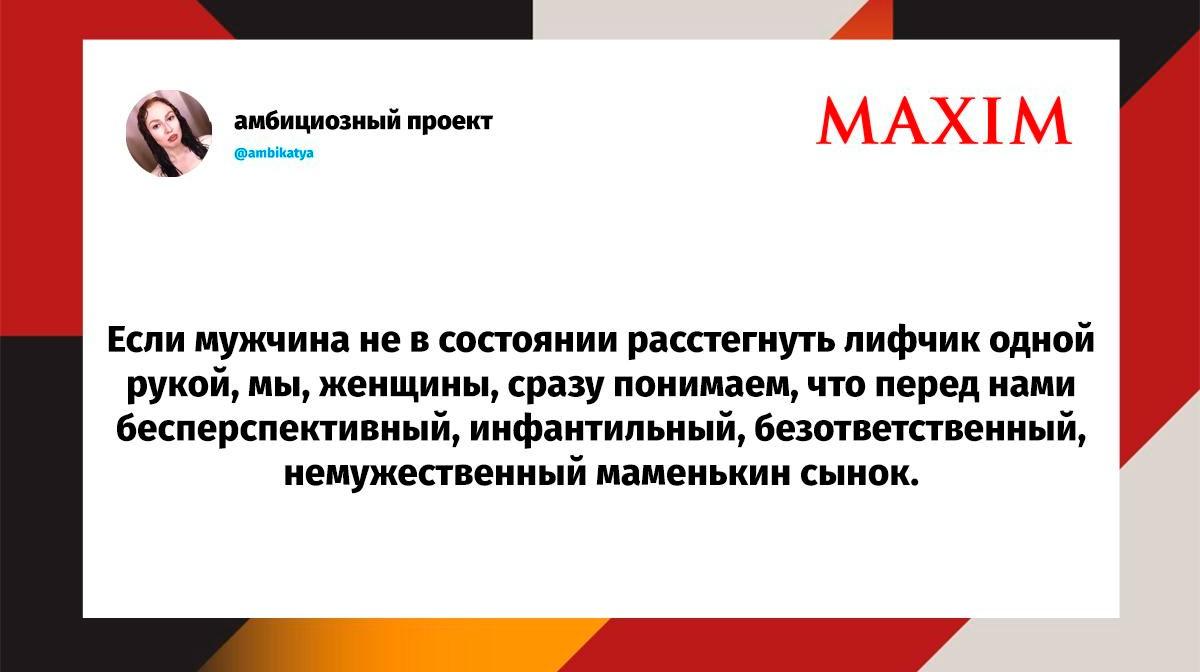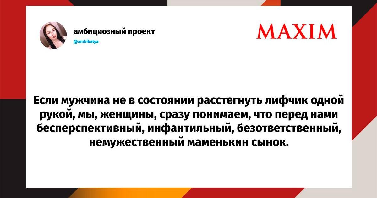 Вот уже несколько лет все мы живем в «исторические времена». Единственное, что нас отвлекает, — это юмор, в том числе шутки из «Твиттера» (X). Русскоязычные пользователи каждый день выходят в эту лаконичную соцсеть, преодолевая запреты и блокировки, чтобы потешить самих себя и друг друга. А мы в MAXIM каждый будний день неустанно несем вахту, собирая их лучшие текстово-визуальные юморески.
