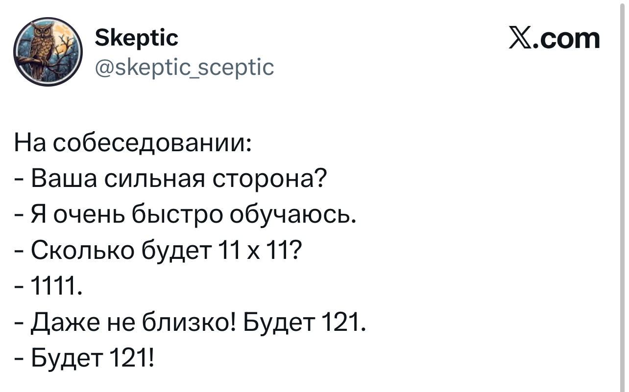 Вот уже несколько лет все мы живем в «исторические времена». Единственное, что нас отвлекает, — это юмор, в том числе шутки из «Твиттера» (X). Русскоязычные пользователи каждый день выходят в эту лаконичную соцсеть, преодолевая запреты и блокировки, чтобы потешить самих себя и друг друга. А мы в MAXIM каждый будний день неустанно несем вахту, собирая их лучшие текстово-визуальные юморески.