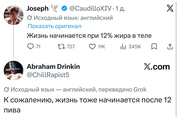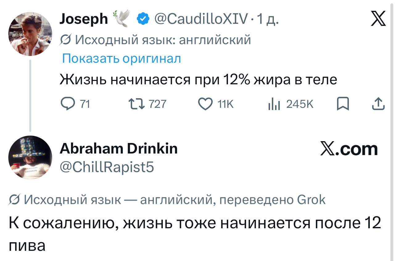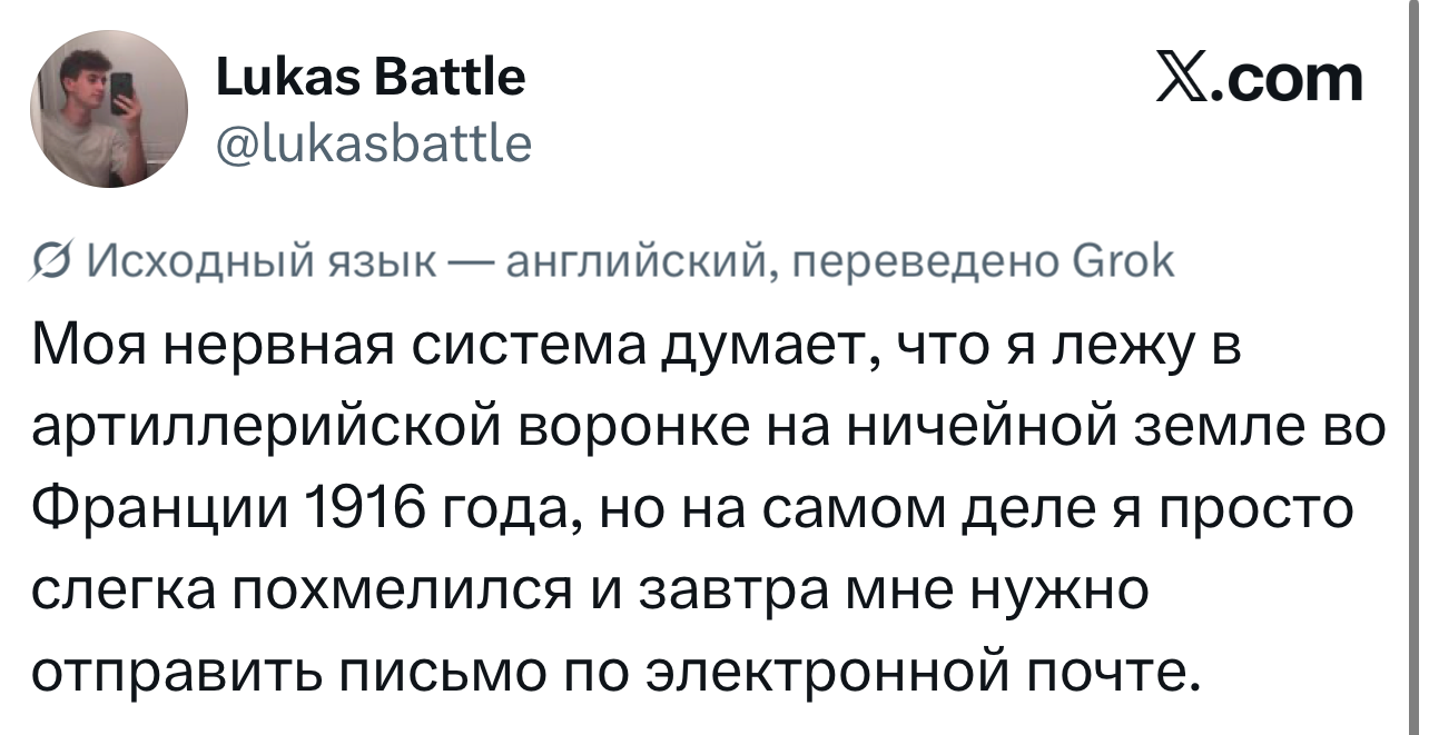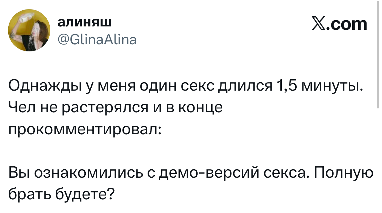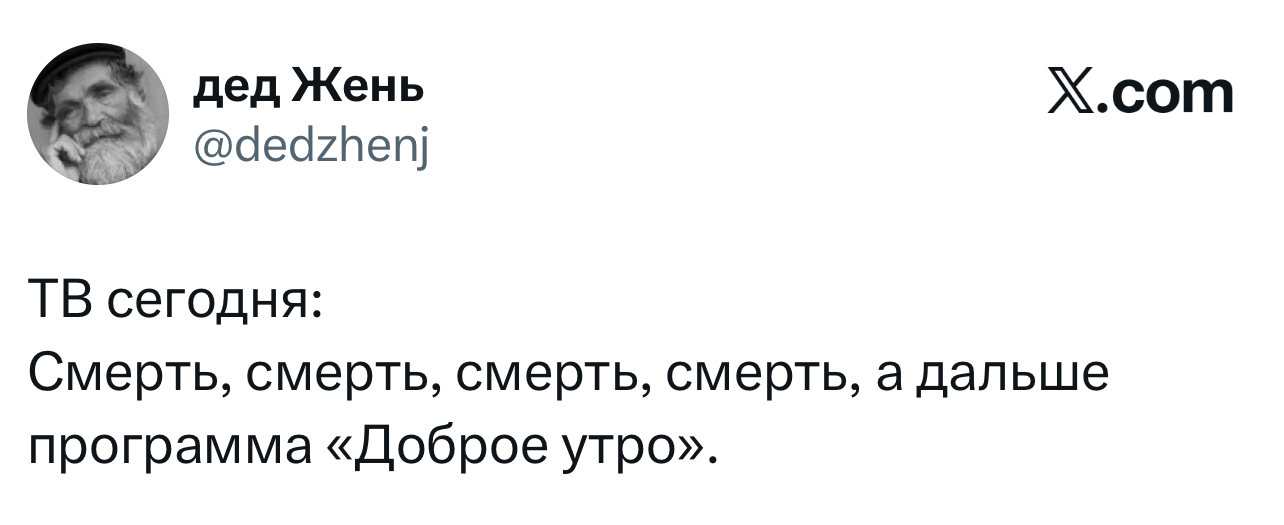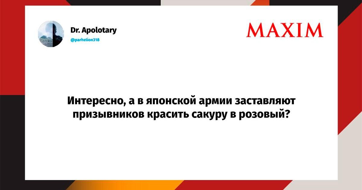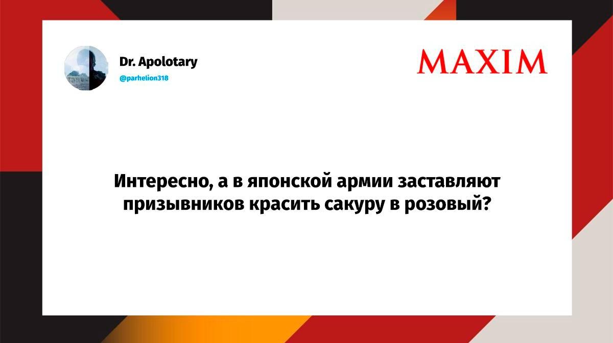 Вот уже несколько лет все мы живем в «исторические времена». Единственное, что нас отвлекает, — это юмор, в том числе шутки из «Твиттера» (X). Русскоязычные пользователи каждый день выходят в эту лаконичную соцсеть, преодолевая запреты и блокировки, чтобы потешить самих себя и друг друга. А мы в MAXIM каждый будний день неустанно несем вахту, собирая их лучшие текстово-визуальные юморески.