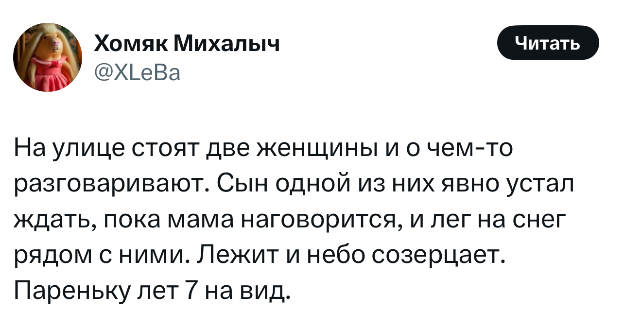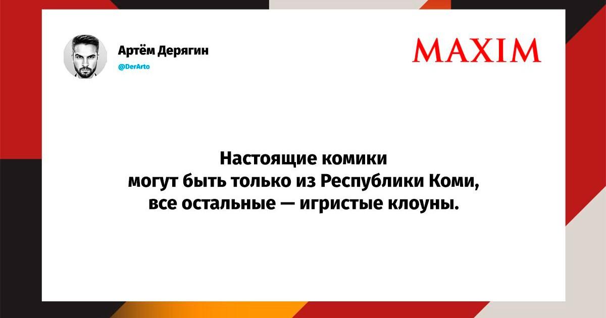 Вот уже несколько лет все мы живем в «исторические времена». Единственное, что нас отвлекает, — это юмор, в том числе шутки из «Твиттера» (X). Русскоязычные пользователи каждый день выходят в эту лаконичную соцсеть, преодолевая запреты и блокировки, чтобы потешить самих себя и друг друга. А мы в MAXIM каждый будний день неустанно несем вахту, собирая их лучшие текстово-визуальные юморески.