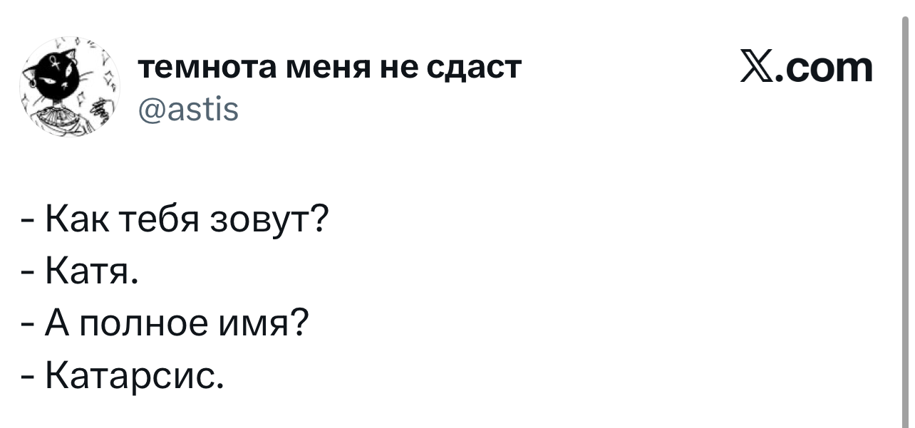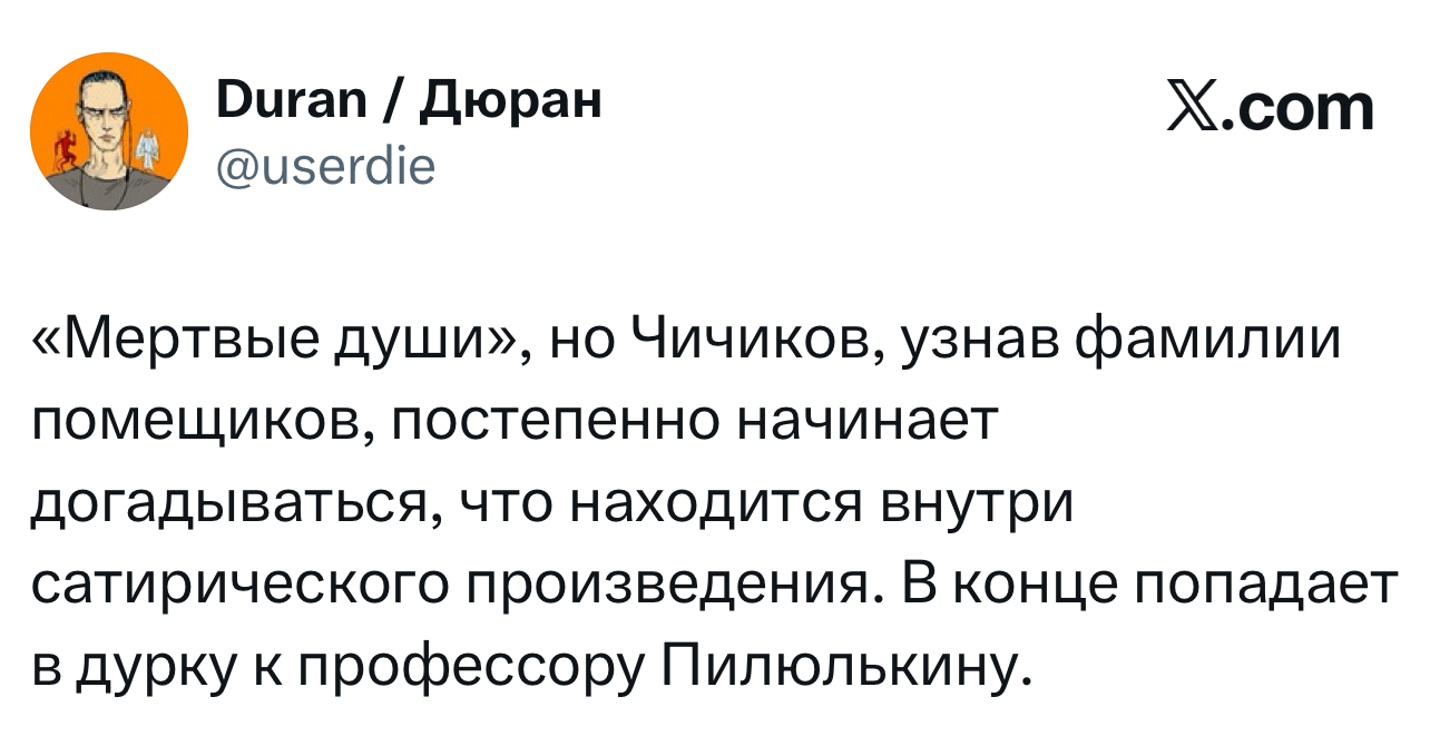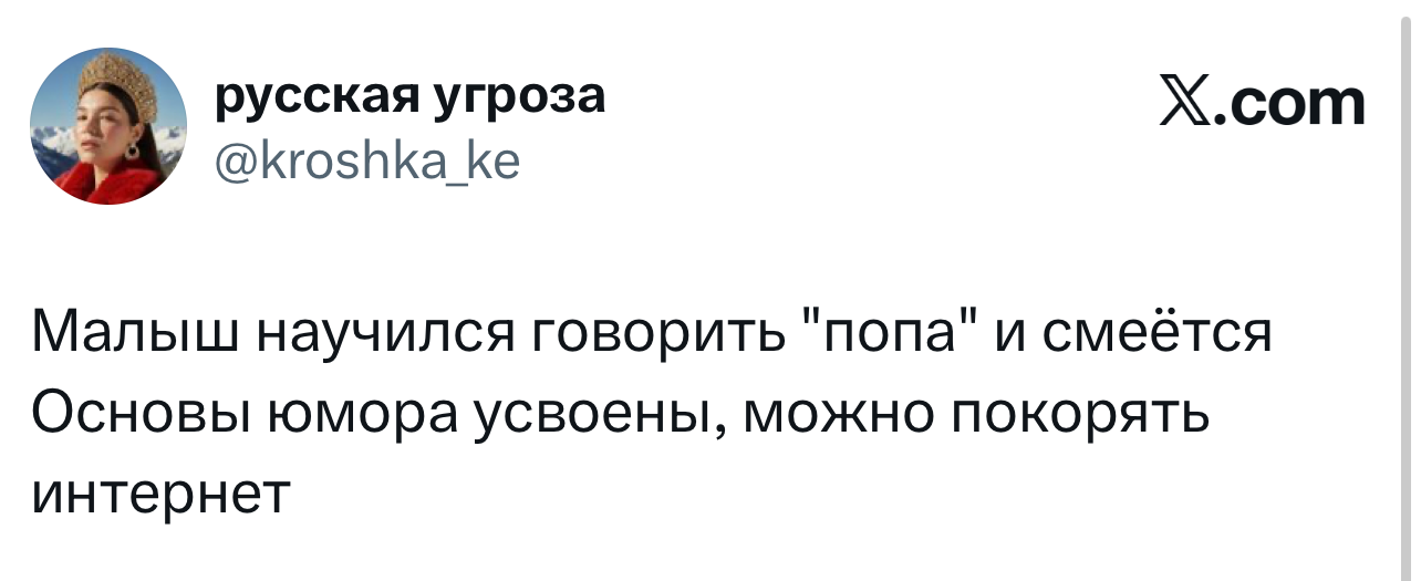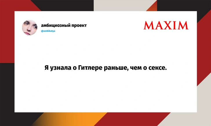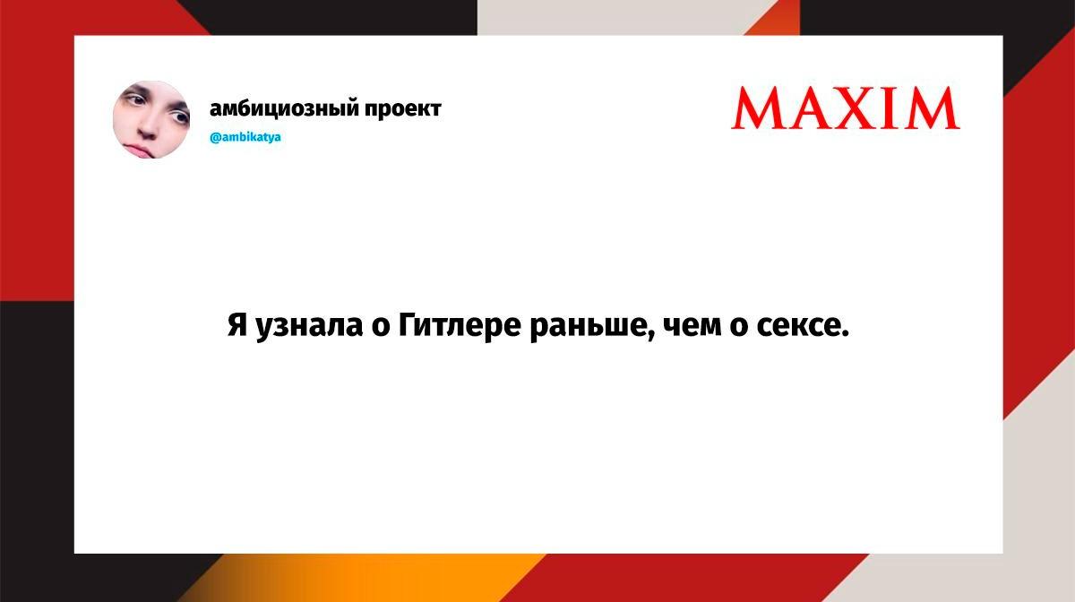 Вот уже несколько лет все мы живем в «исторические времена». Единственное, что нас отвлекает, — это юмор, в том числе шутки из «Твиттера» (X). Русскоязычные пользователи каждый день выходят в эту лаконичную соцсеть, преодолевая запреты и блокировки, чтобы потешить самих себя и друг друга. А мы в MAXIM каждый будний день неустанно несем вахту, собирая их лучшие текстово-визуальные юморески.