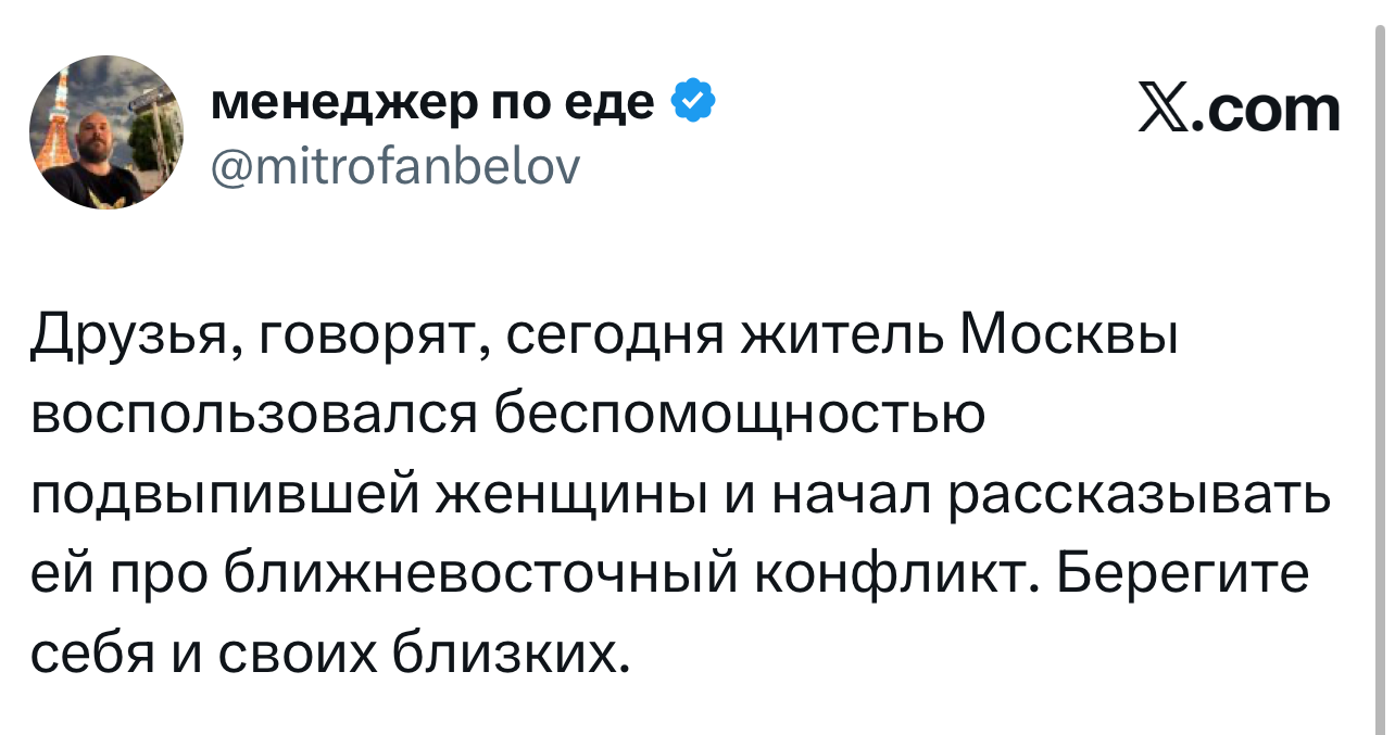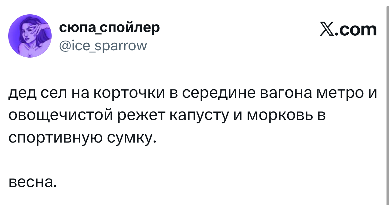 Вот уже несколько лет все мы живем в «исторические времена». Единственное, что нас отвлекает, — это юмор, в том числе шутки из «Твиттера» (X). Русскоязычные пользователи каждый день выходят в эту лаконичную соцсеть, преодолевая запреты и блокировки, чтобы потешить самих себя и друг друга. А мы в MAXIM каждый будний день неустанно несем вахту, собирая их лучшие текстово-визуальные юморески.