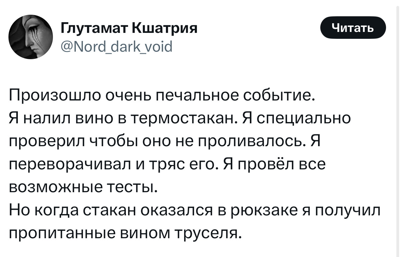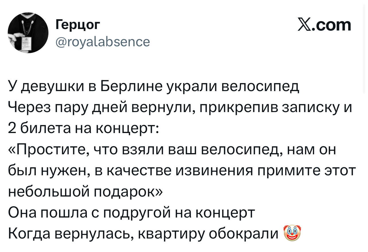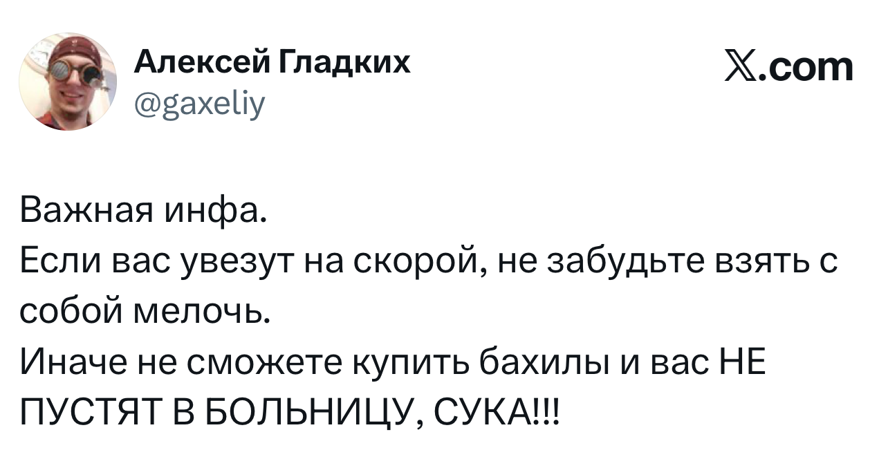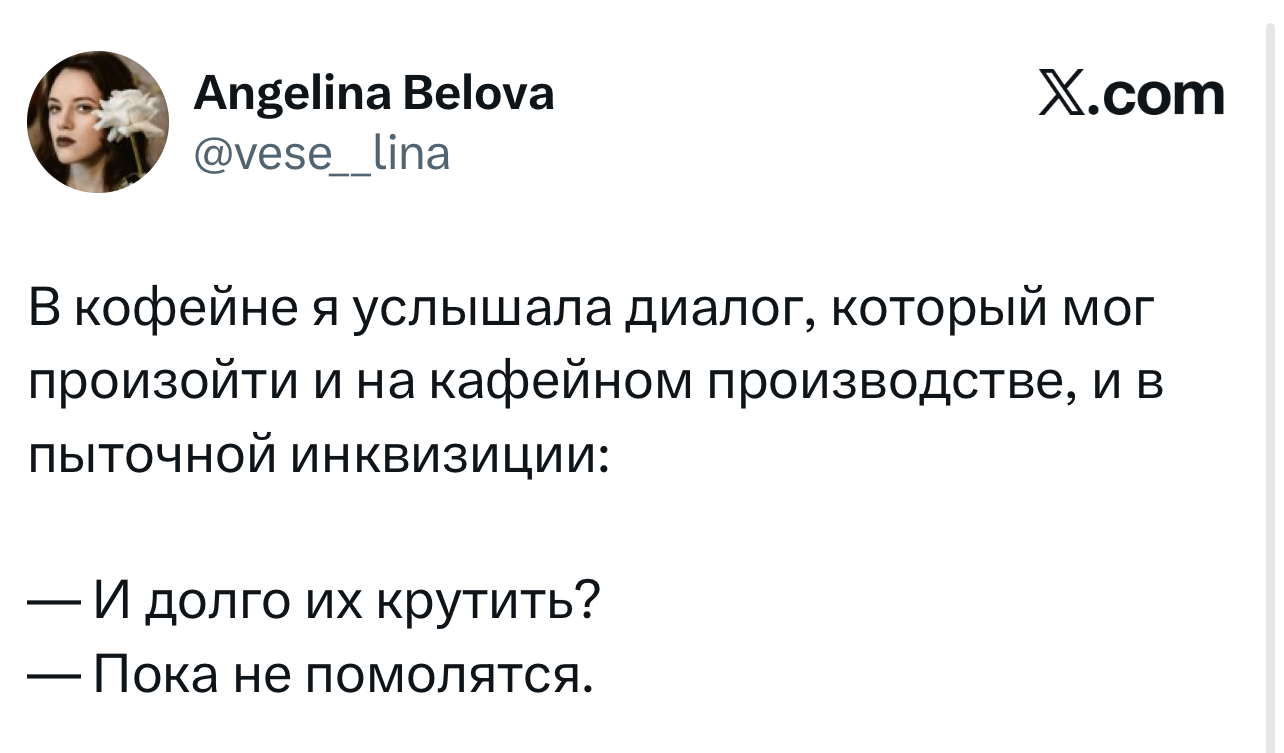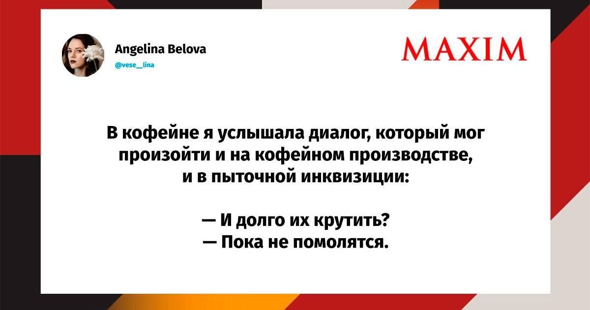 Вот уже несколько лет все мы живем в «исторические времена». Единственное, что нас отвлекает, — это юмор, в том числе шутки из «Твиттера» (X). Русскоязычные пользователи каждый день выходят в эту лаконичную соцсеть, преодолевая запреты и блокировки, чтобы потешить самих себя и друг друга. А мы в MAXIM каждый будний день неустанно несем вахту, собирая их лучшие текстово-визуальные юморески.