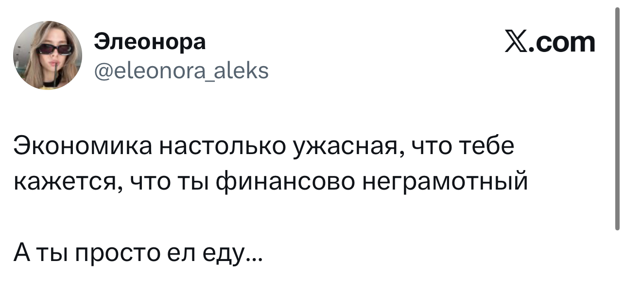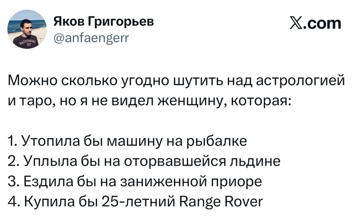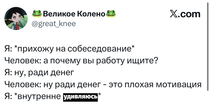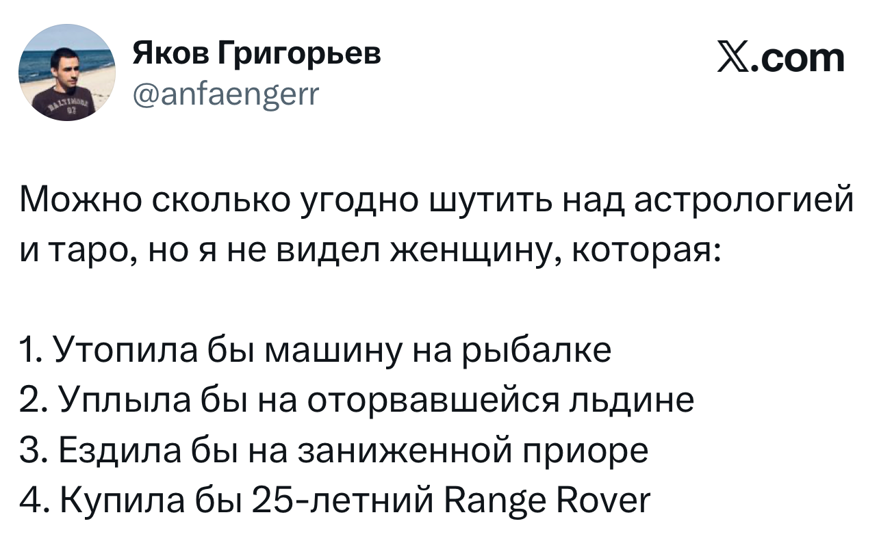 Вот уже несколько лет все мы живем в «исторические времена». Единственное, что нас отвлекает, — это юмор, в том числе шутки из «Твиттера» (X). Русскоязычные пользователи каждый день выходят в эту лаконичную соцсеть, преодолевая запреты и блокировки, чтобы потешить самих себя и друг друга. А мы в MAXIM каждый будний день неустанно несем вахту, собирая их лучшие текстово-визуальные юморески.
