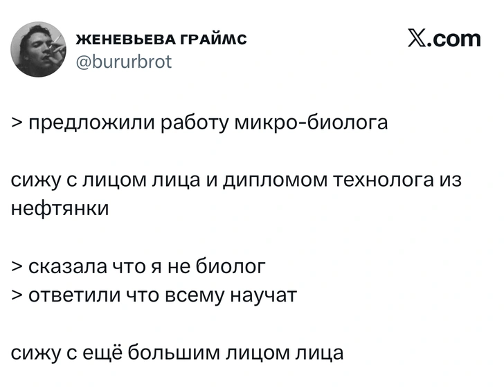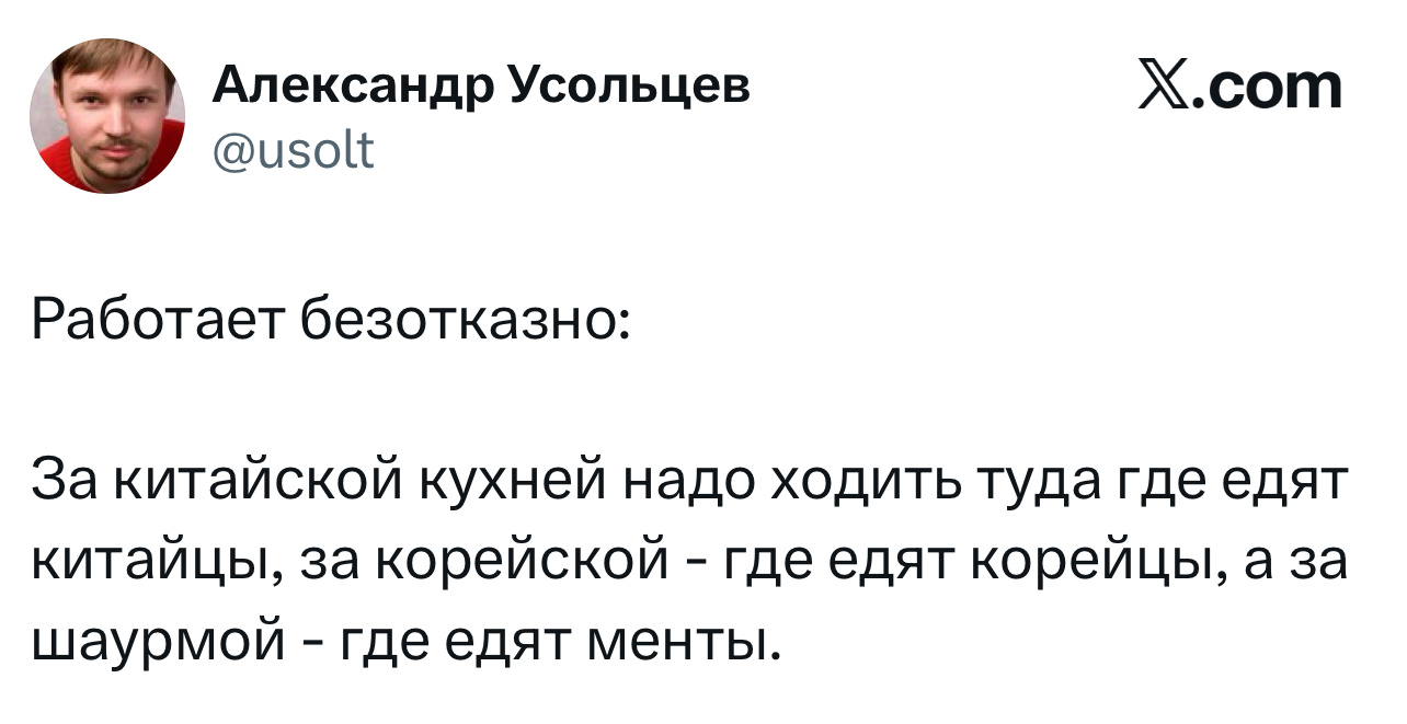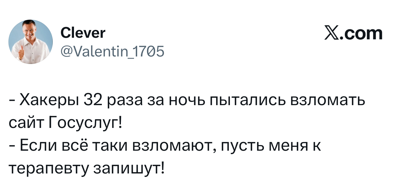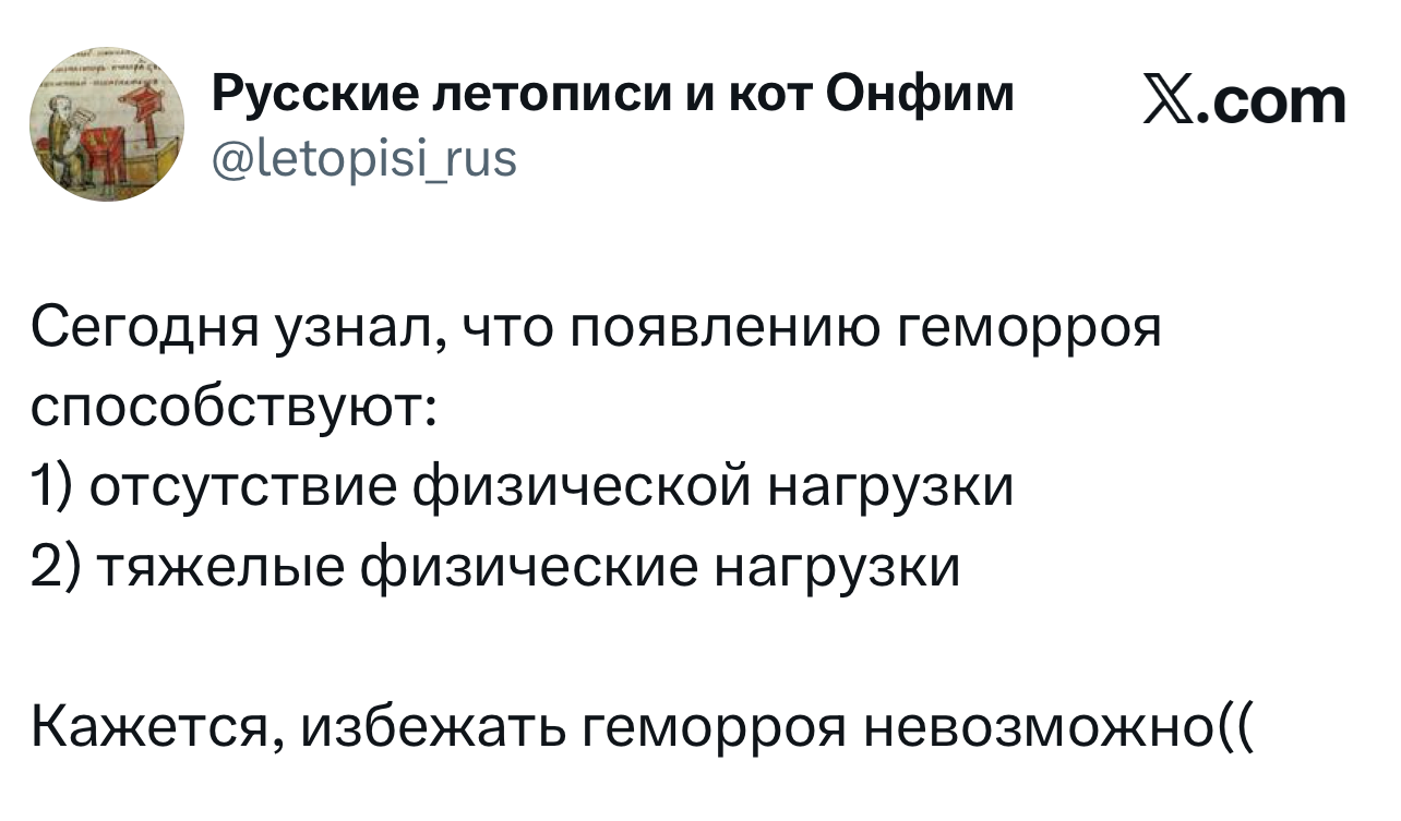 Вот уже несколько лет все мы живем в «исторические времена». Единственное, что нас отвлекает, — это юмор, в том числе шутки из «Твиттера» (X). Русскоязычные пользователи каждый день выходят в эту лаконичную соцсеть, преодолевая запреты и блокировки, чтобы потешить самих себя и друг друга. А мы в MAXIM каждый будний день неустанно несем вахту, собирая их лучшие текстово-визуальные юморески.