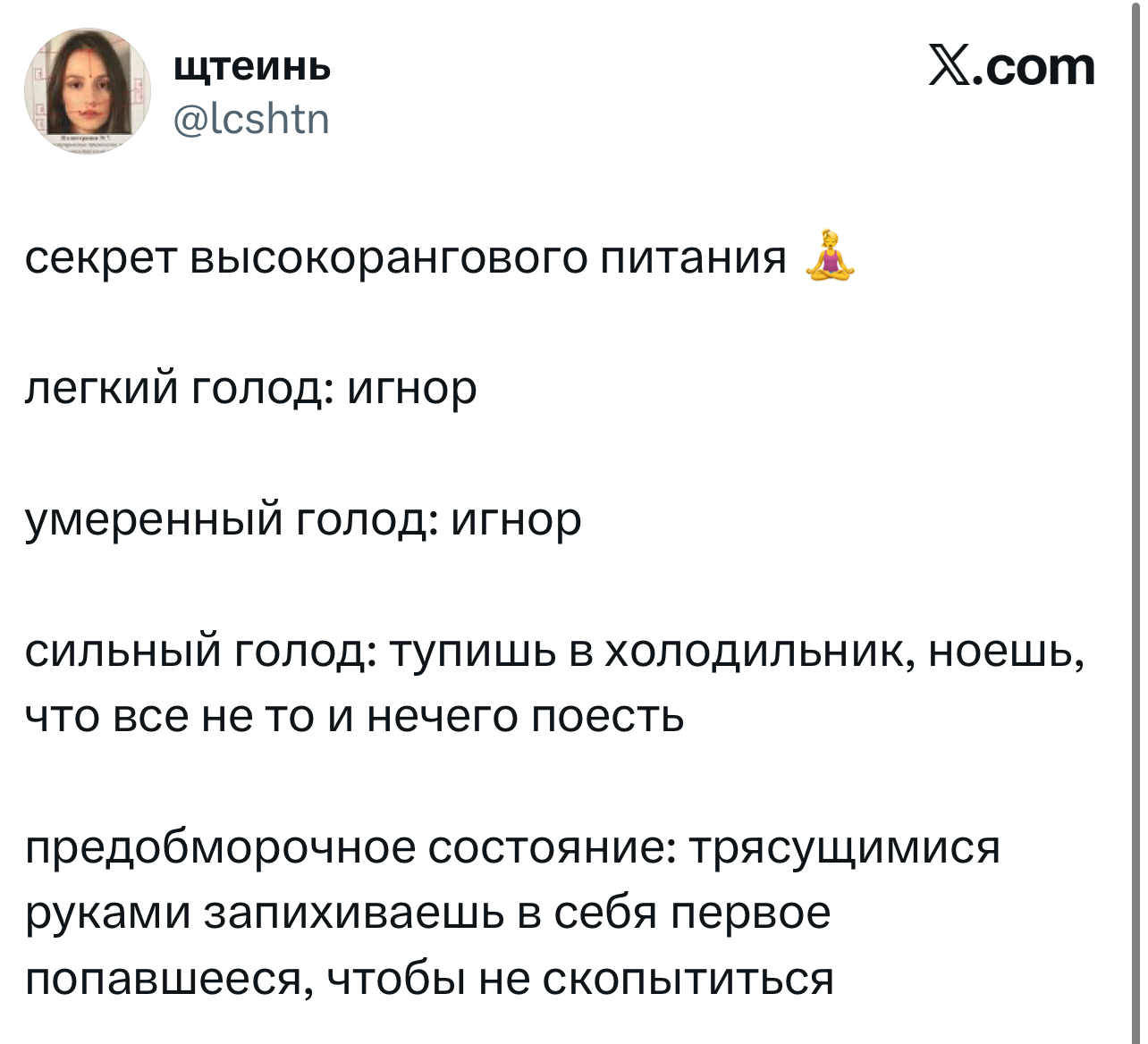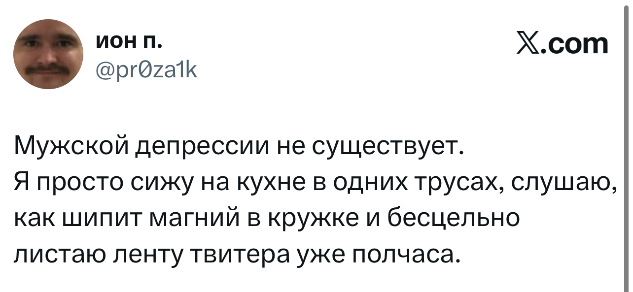 Вот уже несколько лет все мы живем в «исторические времена». Единственное, что нас отвлекает, — это юмор, в том числе шутки из «Твиттера» (X). Русскоязычные пользователи каждый день выходят в эту лаконичную соцсеть, преодолевая запреты и блокировки, чтобы потешить самих себя и друг друга. А мы в MAXIM каждый будний день неустанно несем вахту, собирая их лучшие текстово-визуальные юморески.