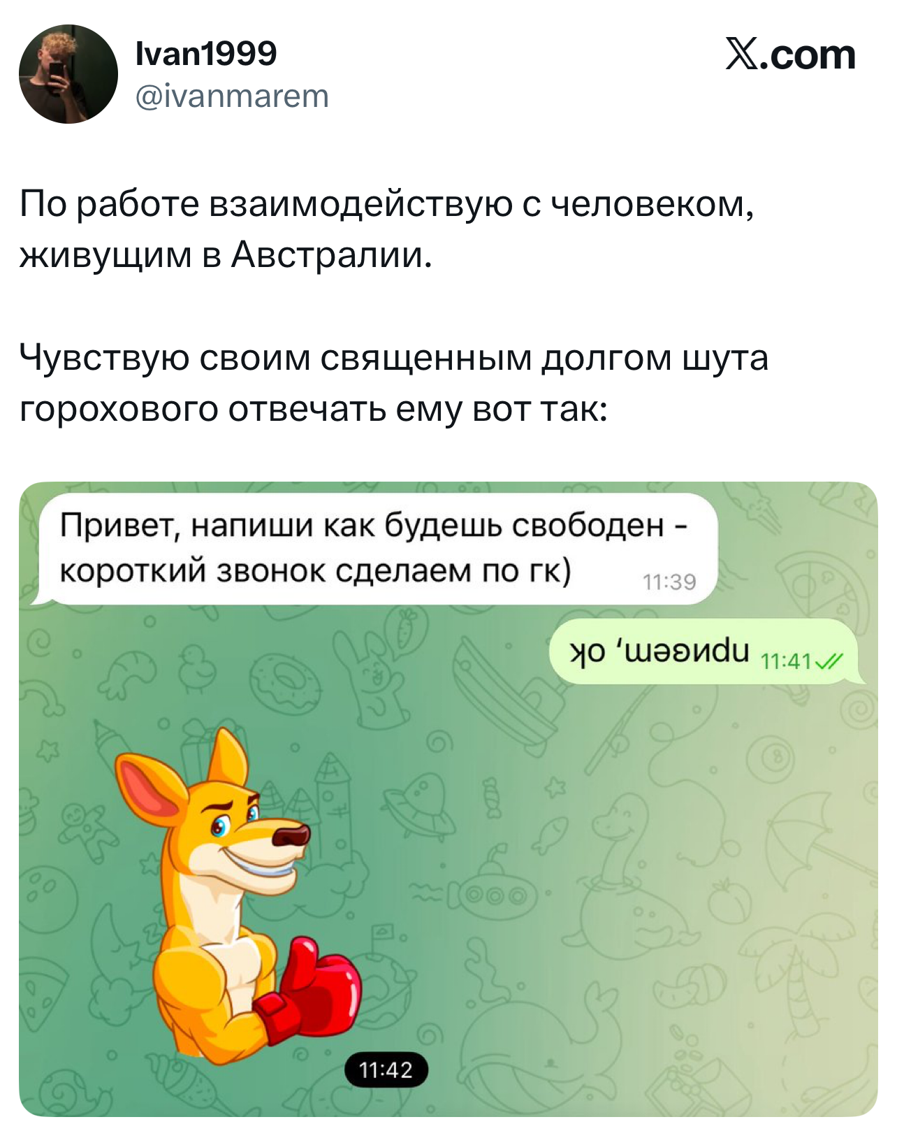 В России заблокировали X (он же «Твиттер»), но наш специальный корреспондент из-за рубежа продолжает присылать нам самые удачные твиты дня.