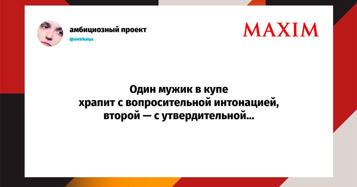 Вот уже несколько лет все мы живем в «исторические времена». Единственное, что нас отвлекает, — это юмор, в том числе шутки из «Твиттера» (X). Русскоязычные пользователи каждый день выходят в эту лаконичную соцсеть, преодолевая запреты и блокировки, чтобы потешить самих себя и друг друга. А мы в MAXIM каждый будний день неустанно несем вахту, собирая их лучшие текстово-визуальные юморески.