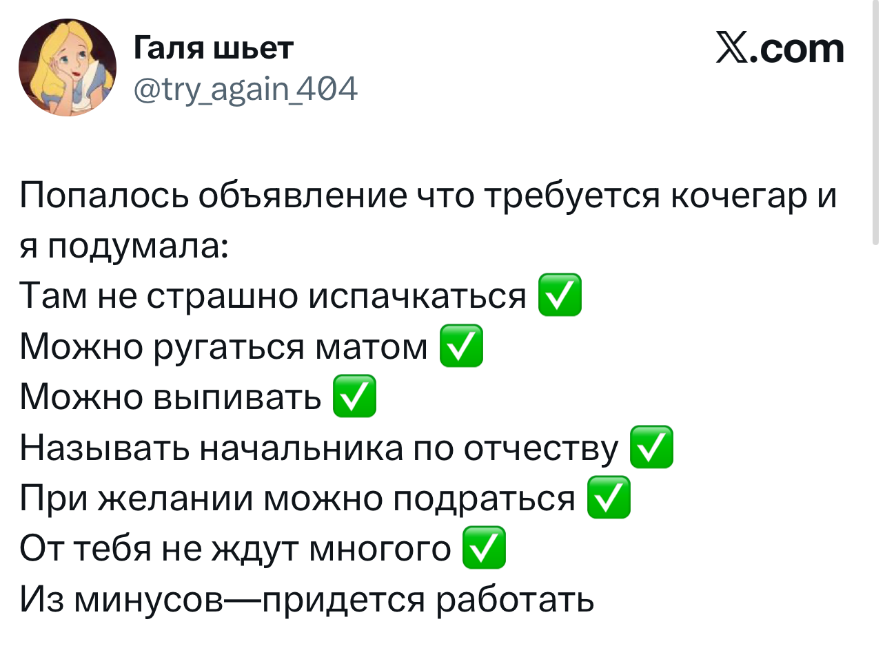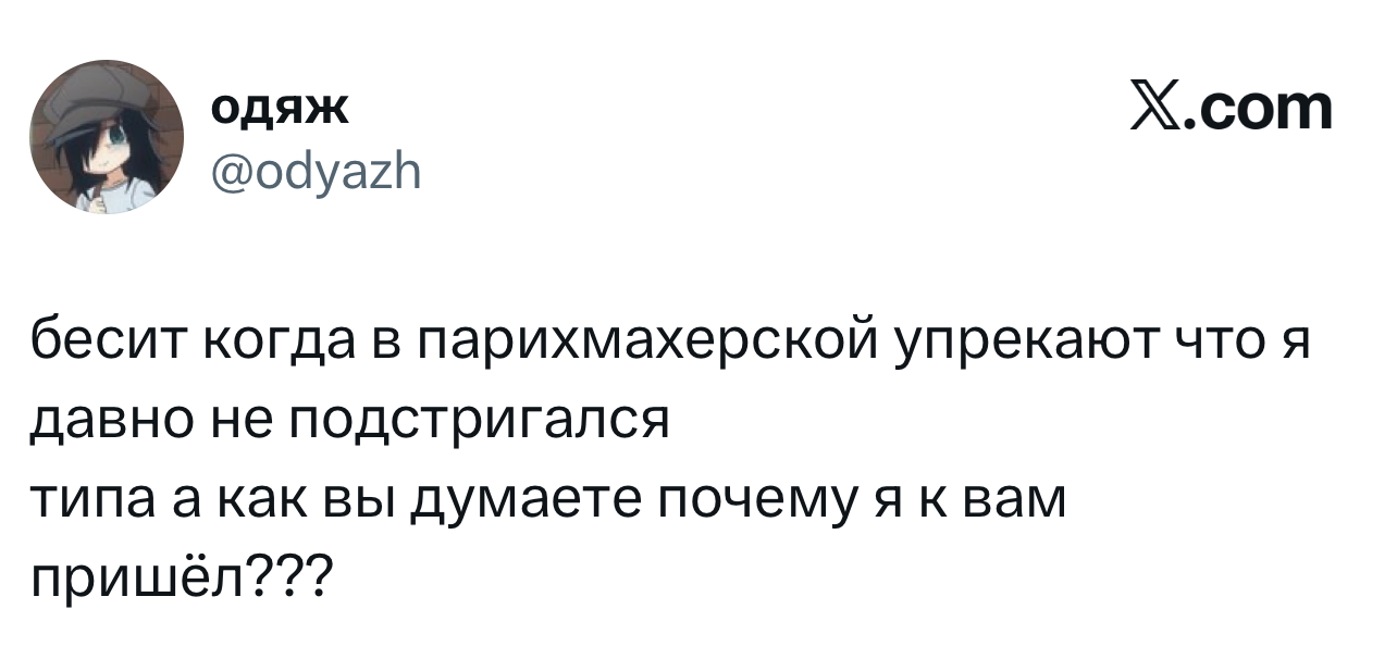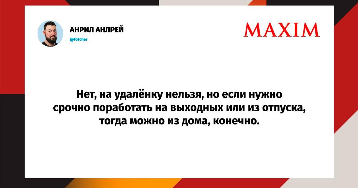 Вот уже несколько лет все мы живем в «исторические времена». Единственное, что нас отвлекает, — это юмор, в том числе шутки из «Твиттера» (X). Русскоязычные пользователи каждый день выходят в эту лаконичную соцсеть, преодолевая запреты и блокировки, чтобы потешить самих себя и друг друга. А мы в MAXIM каждый будний день неустанно несем вахту, собирая их лучшие текстово-визуальные юморески.