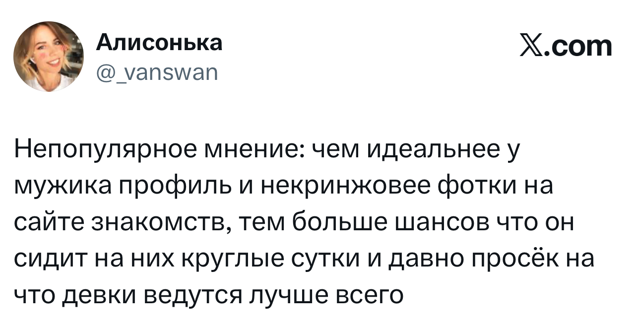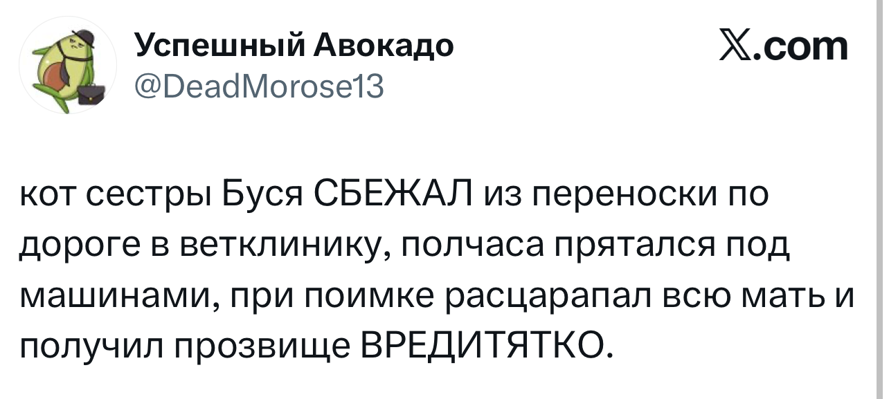 Вот уже несколько лет все мы живем в «исторические времена». Единственное, что нас отвлекает, — это юмор, в том числе шутки из «Твиттера» (X). Русскоязычные пользователи каждый день выходят в эту лаконичную соцсеть, преодолевая запреты и блокировки, чтобы потешить самих себя и друг друга. А мы в MAXIM каждый будний день неустанно несем вахту, собирая их лучшие текстово-визуальные юморески.