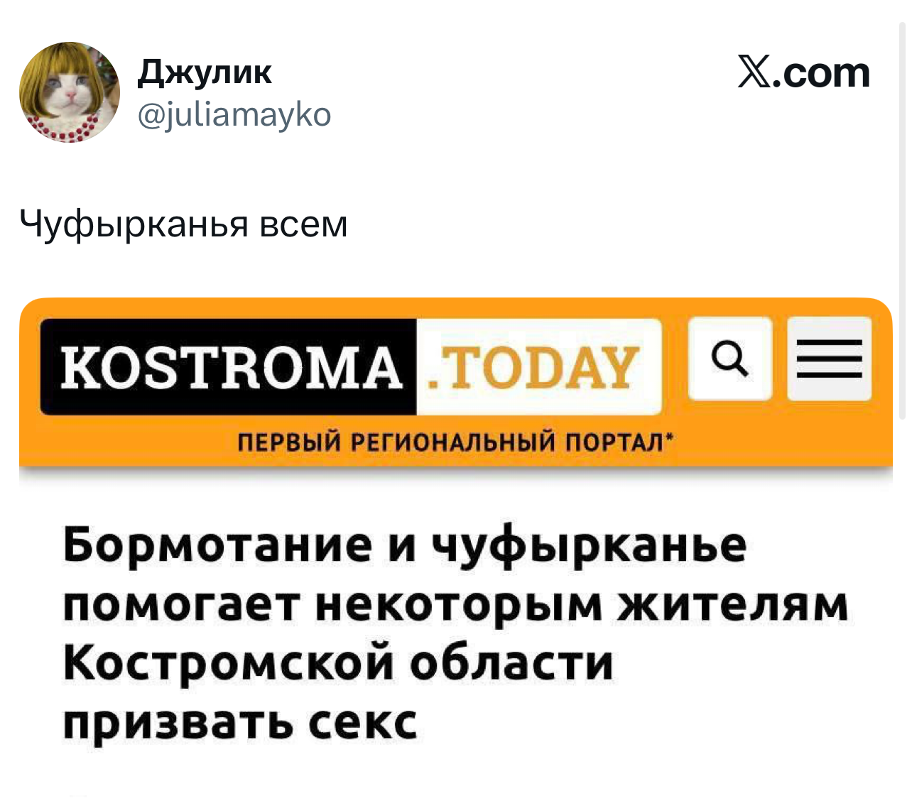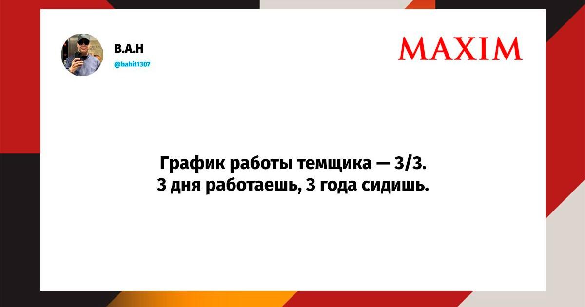 Вот уже несколько лет все мы живем в «исторические времена». Единственное, что нас отвлекает, — это юмор, в том числе шутки из «Твиттера» (X). Русскоязычные пользователи каждый день выходят в эту лаконичную соцсеть, преодолевая запреты и блокировки, чтобы потешить самих себя и друг друга. А мы в MAXIM каждый будний день неустанно несем вахту, собирая их лучшие текстово-визуальные юморески.