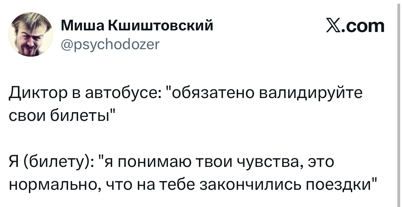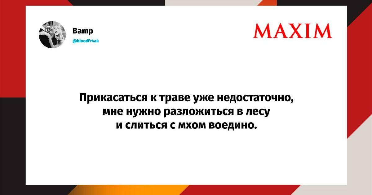 Вот уже несколько лет все мы живем в «исторические времена». Единственное, что нас отвлекает, — это юмор, в том числе шутки из «Твиттера» (X). Русскоязычные пользователи каждый день выходят в эту лаконичную соцсеть, преодолевая запреты и блокировки, чтобы потешить самих себя и друг друга. А мы в MAXIM каждый будний день неустанно несем вахту, собирая их лучшие текстово-визуальные юморески.