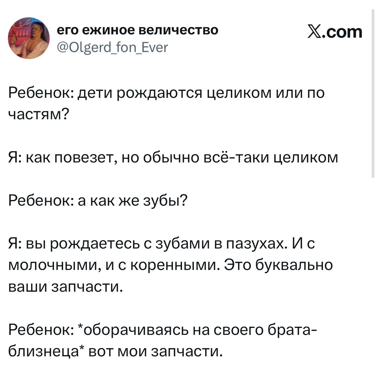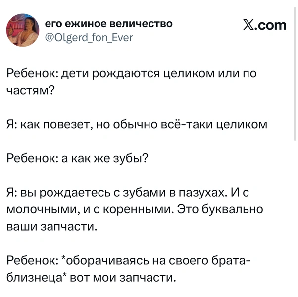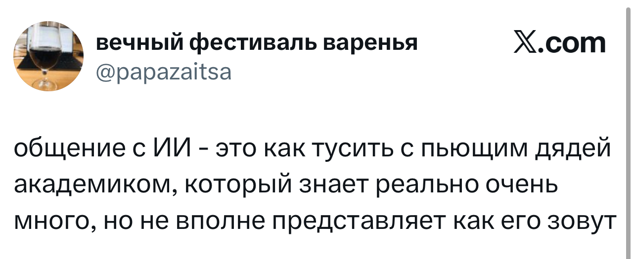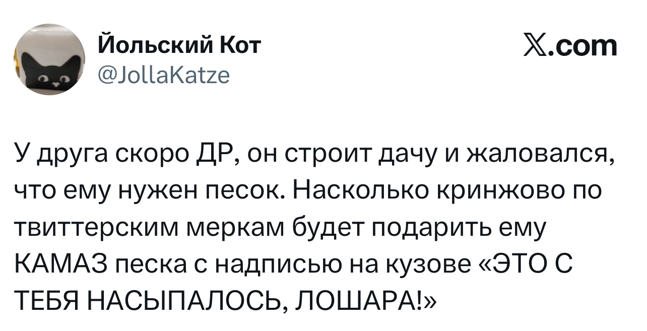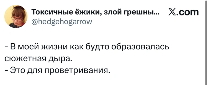Вот уже несколько лет все мы живем в «исторические времена». Единственное, что нас отвлекает, — это юмор, в том числе шутки из «Твиттера» (X). Русскоязычные пользователи каждый день выходят в эту лаконичную соцсеть, преодолевая запреты и блокировки, чтобы потешить самих себя и друг друга. А мы в MAXIM каждый будний день неустанно несем вахту, собирая их лучшие текстово-визуальные юморески.